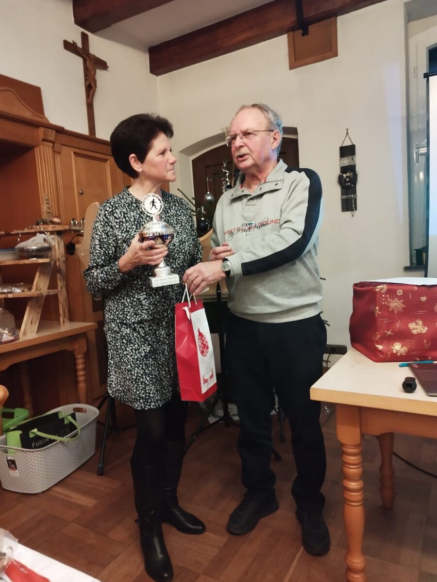 Zum Schluss des offiziellen Teils überreichten die Sportler ihren Trainern kleine Geschenke mit der Bitte, sie mögen ihre Tätigkeit noch lange ausüben. Die Vorstandschaft bedankte sich bei den Walkern für die aktive Unterstützung bei Arbeiten für den Verein während des Jahres. Zur Freude aller gewährte sie einen Essenszuschuss.