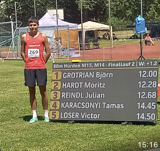 Am vergangenen Wochenende trafen sich die besten bayerischen Mehrkämpfer der Altersklasse U 16 zu den Bayerischen Block-Meisterschaften in Pfaffenhofen. Am Samstag herrschten hochsommerliche Temperaturen und beste Stimmung. Alle Athletinnen und Athleten boten sehr gute Leistungen. Vom TV Vohenstrauß war Nachwuchshoffnung Julian Reindl dabei – und überzeugte vollauf. Julian zeigte einen großartigen Mehrkampf im Block Sprint/Sprung in der Klasse M 15 und schaffte mit 2650 Punkten eine neue persönliche Bestleistung.