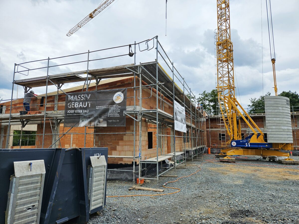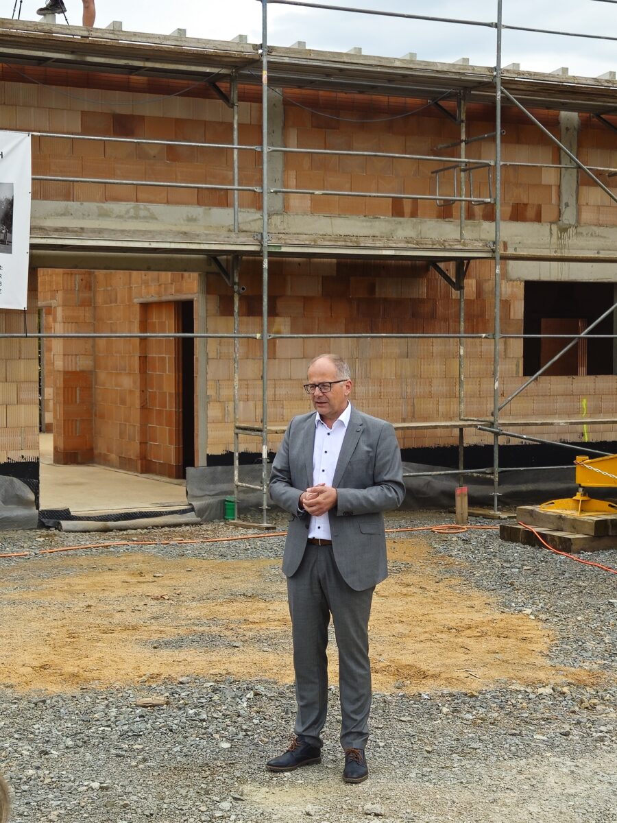 Bürgermeister Roman Schäffler zeigte sich bei seiner Ansprache zufrieden mit dem Baufortschritt: „Wir liegen sowohl im Kosten- als auch im Zeitplan. Es ist schon viel erreicht, das spricht für die hervorragende Organisation auf der Baustelle. Mein Dank gilt den Fachplanern, den Baufirmen und natürlich auch unserem Projektleiter Stefan Gaßler sowie Bauamtsleiter Roland Sächerl.“ Besonders hob er den bisher unfallfreien Verlauf der Bauarbeiten hervor: „Dafür sind wir sehr dankbar.“