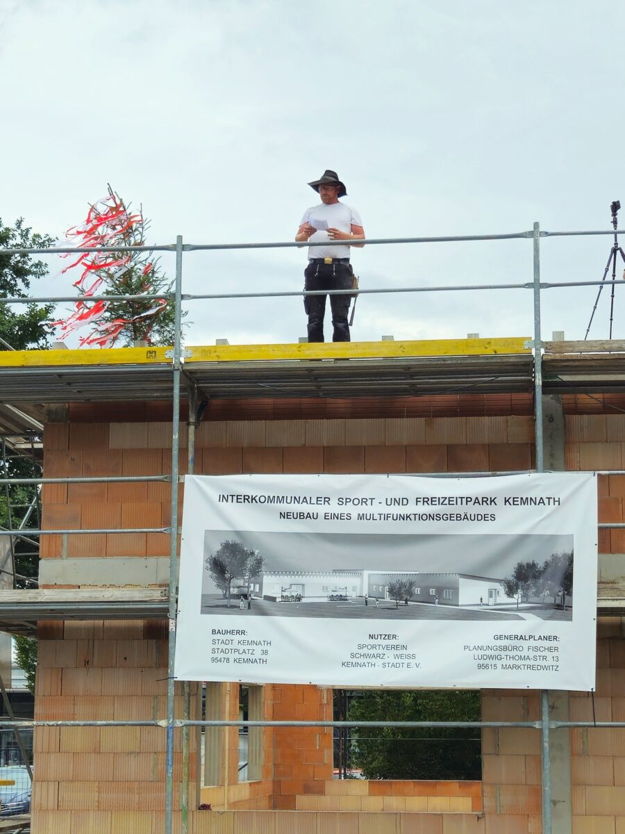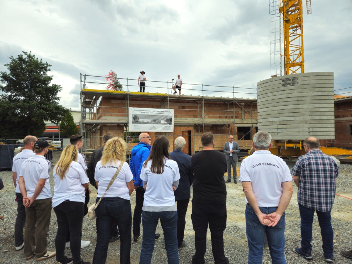 Das Gebäude wird künftig das Herzstück der weitläufigen Anlage sein. Vertreter der bauausführenden Unternehmen – darunter die Josef Reger Bau GmbH aus Vohenstrauß, die Zimmerei Kreuzer aus Lanz bei Störnstein sowie der verantwortliche Architekt Johannes Fischer vom Planungsbüro Fischer aus Marktredwitz – nahmen ebenso an der Feier teil wie Vertreter der beiden örtlichen Schulen, zahlreiche Mitglieder des SVSW Kemnath sowie Gäste aus Stadtrat und Verwaltung.