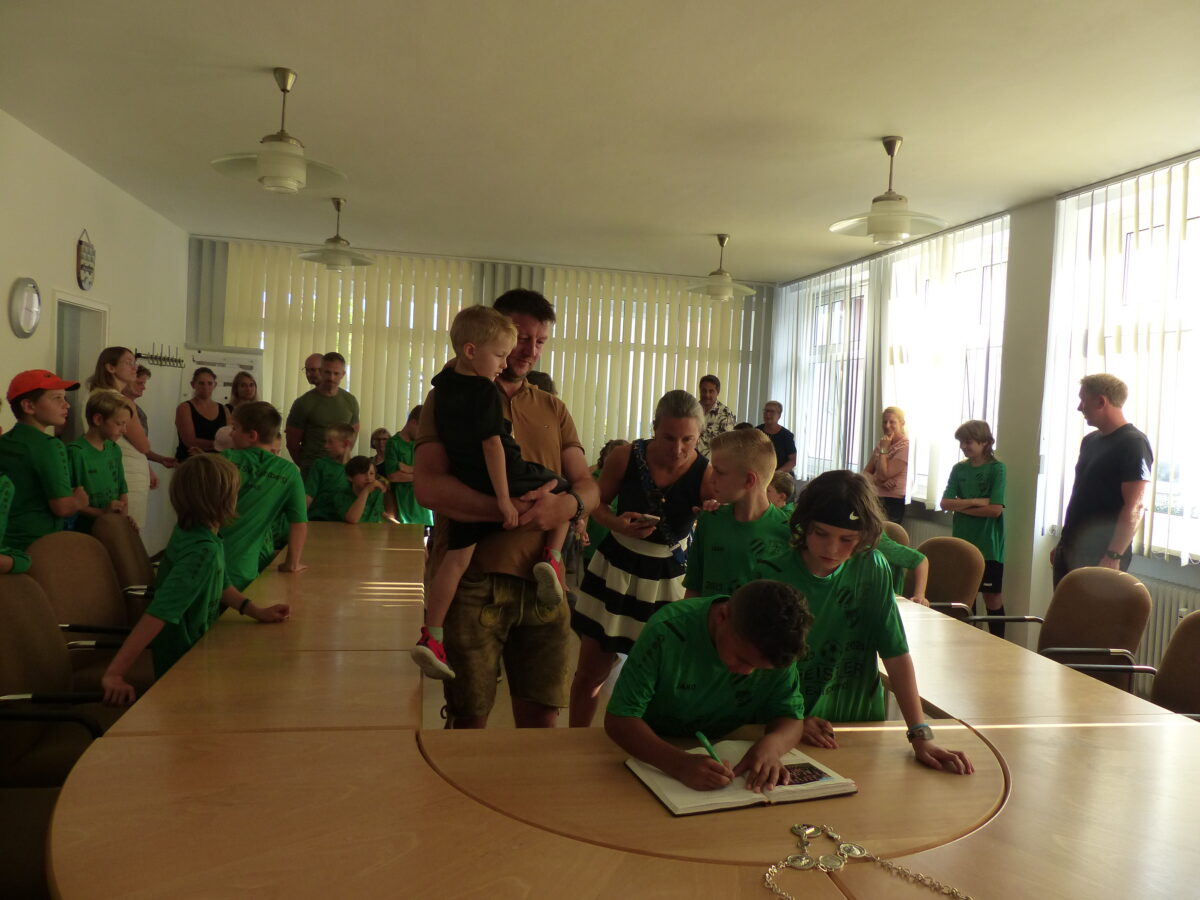 Ein besonderer Dank von Riedel ging an Karin Schieder für die Meistershirts. Stolz auf die Erfolge der Jugend war auch Bürgermeister Gerhard List. Er legte für diesen Termin auch die Bürgermeisterkette um. “Eure Erfolge sind es wert, dass ihr euch in das Gästebuch der Marktgemeinde verewigen dürft”, so List. Eintragen durften sich auch die Eltern, Trainer und Betreuer.
