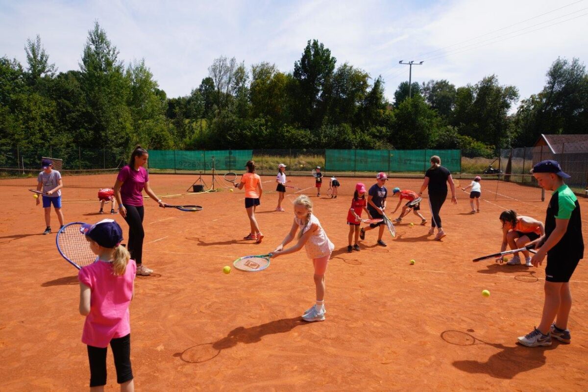 “Kinder lernen spielerisch”, unter diesem Leitsatz übten die Mädchen und Buben beim Auftakt des Ferienprogramms beim TC Waldthurn so manchen neuen Schlag ein und wurden mit viel Spaß an den Tennissport herangeführt. Victoria Reis, Wolfgang Golla, Manfred Holbaum und Norbert Sollfrank brachten den Ferienkindern den richtigen Schwung mit dem Tennisschläger bei.