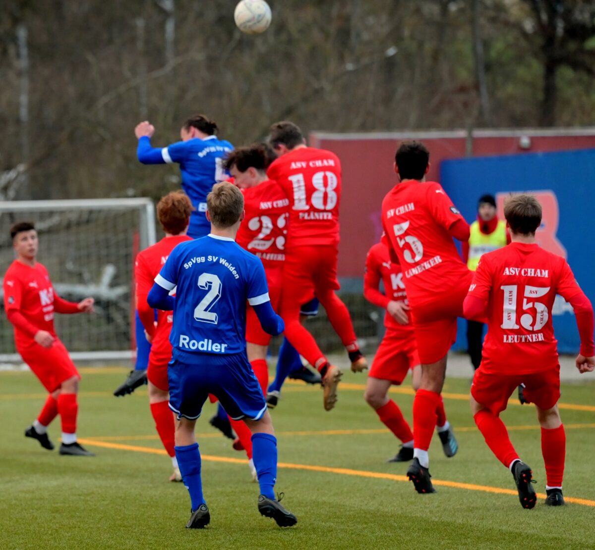 Nur eine Minute später waren es wieder die Chamer, die mit einem sehenswerten Doppelpass zwischen Kalteis und Marco Pfab zum 3:0 erhöhen konnten. Nach dem Seitenwechsel ließen die Weidener ihr Können aufblitzen. Nach einem Freistoß von Pavel Panafidin war es Josef Rodler, der per Kopf zum 1:3 einschob. Nur war es die 83. Minute und damit erneut zu spät, um das Spiel noch zu drehen. So geht der ASV Cham mit 27 Punkten in die Winterpause und Weiden rangiert auf dem vorletzten Tabellenplatz der Fußball Bayernliga Nord.
