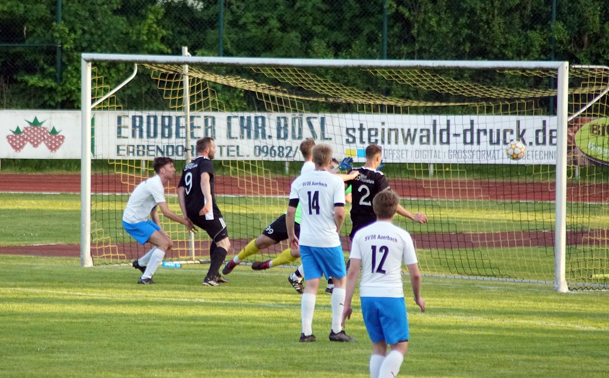 Nach einem Abwehrfehler in der Auerbacher Abwehr ging die SG Wurz/Störnstein in der 31. Minute durch Manuel Windschiegel in Führung. Kurz darauf glich Samuel Barth für den SV 08 aus. Jonas Hoch stand in der 43. Spielminute nach einer Ecke goldrichtig und brachte die SG wieder in Front. Vor dem Pausenpfiff hatte Florian Schuller noch die große Chance zum 3:1, aber er verzog freistehend.