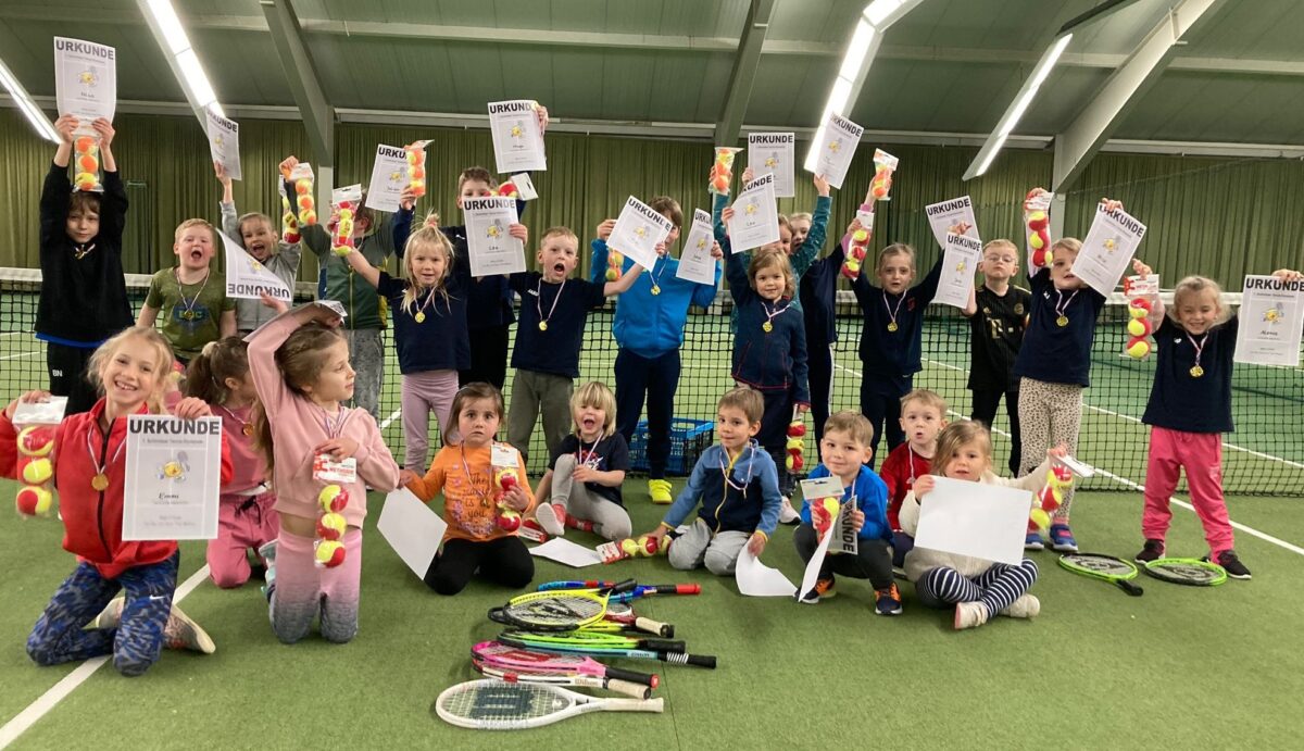 Mehr als zwei Dutzend kleine Tennisspieler/innen der SpVgg Schirmitz trainierten im Winter regelmäßig in der Halle des TC Am Postkeller Weiden. Zum Abschluss der Wintersaison stand für die Drei- bis Neunjährigen eine Tennis-Olympiade auf dem Programm, bei der sie zeigen konnten, was sie gelernt haben. Die Trainerinnen Jana Bösl, Caro Forster und Kathi Mutzbauer hatten sich für die Olympiade einiges einfallen lassen und verschiedene Stationen wie Zielwerfen, Weitwerfen, Vorhand, Rückhand, Low-T-Ball und Aufschläge aufgebaut. Der Wettbewerb machte den Kindern großen Spaß und am Ende gab es für alle noch Urkunden, Medaillen und Tennisbälle als Belohnung.