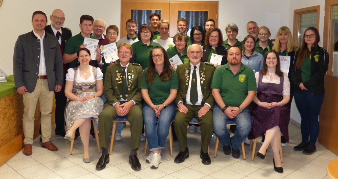 Eine wesentliche Stütze des Vereins sind die langjährigen treuen Mitglieder, so Robl. Für 10 Jahr wurde Louis Faltenbacher, für 25 Jahre Anita Renner und für 60 Jahre Ernst Robl und Jakob Faltenbacher ausgezeichnet. Die Nadel des Oberpfälzer Nordgaues erhielten: in Verbundenheit Michael Cibis, Valentin Schiesl und Christine Zirngibl. Die Kleine Verdienstadel wurde an Alexandra Faltenbacher überreicht. Die Kleine Goldene Verdienstnadel wurde an Petra Schmidt und Katharina Steinhilber überreicht. Eine besondere Ehrung wurde Bettina Robl zuteil. Neben ihren vielen Jahren in verschiedenen Funktionen, ist sie aktuell die beste Luftgewehrschützin, die der Verein jemals hervorgebracht hat, so Robl.