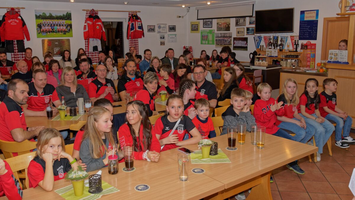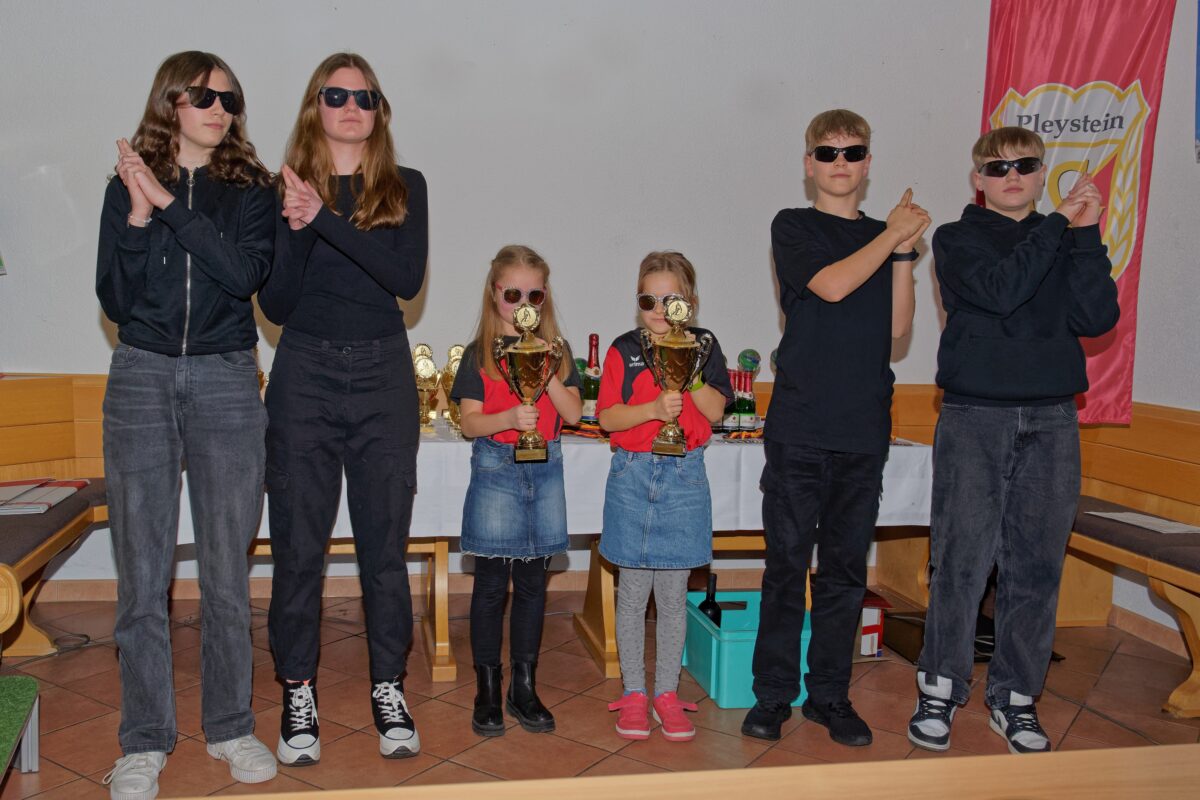 Auch Bürgermeister Rainer Rewitzer blickte mit Stolz ins bis auf den letzten Platz besetzte TSV-Sportheim und meinte, der Schiclub sei nicht nur im Winter, sondern auch im Sommer mit Lauftraining sportlich aktiv. Schließlich schritten Christoph Müllhofer, Bürgermeister Rewitzer und Ski-Alpin Sportwart Alex Schön zur Tat und kürten die bis dorthin „geheim gehaltenen Sieger“. Das Thema Sicherheit stand hier, gepaart mit viel Spaß, an erster Stelle. Das „junge Securite-Team“ Leonie Essler, Luisa Prem, Pia Schön, Mareike Forster, Valentin Forster und Thomas Schödl brachte bei der Sieger-Zeremonie zur Freude der begeisterten TSV-Skifamilie die Pokale mit ernster Miene sicher in den Saal.