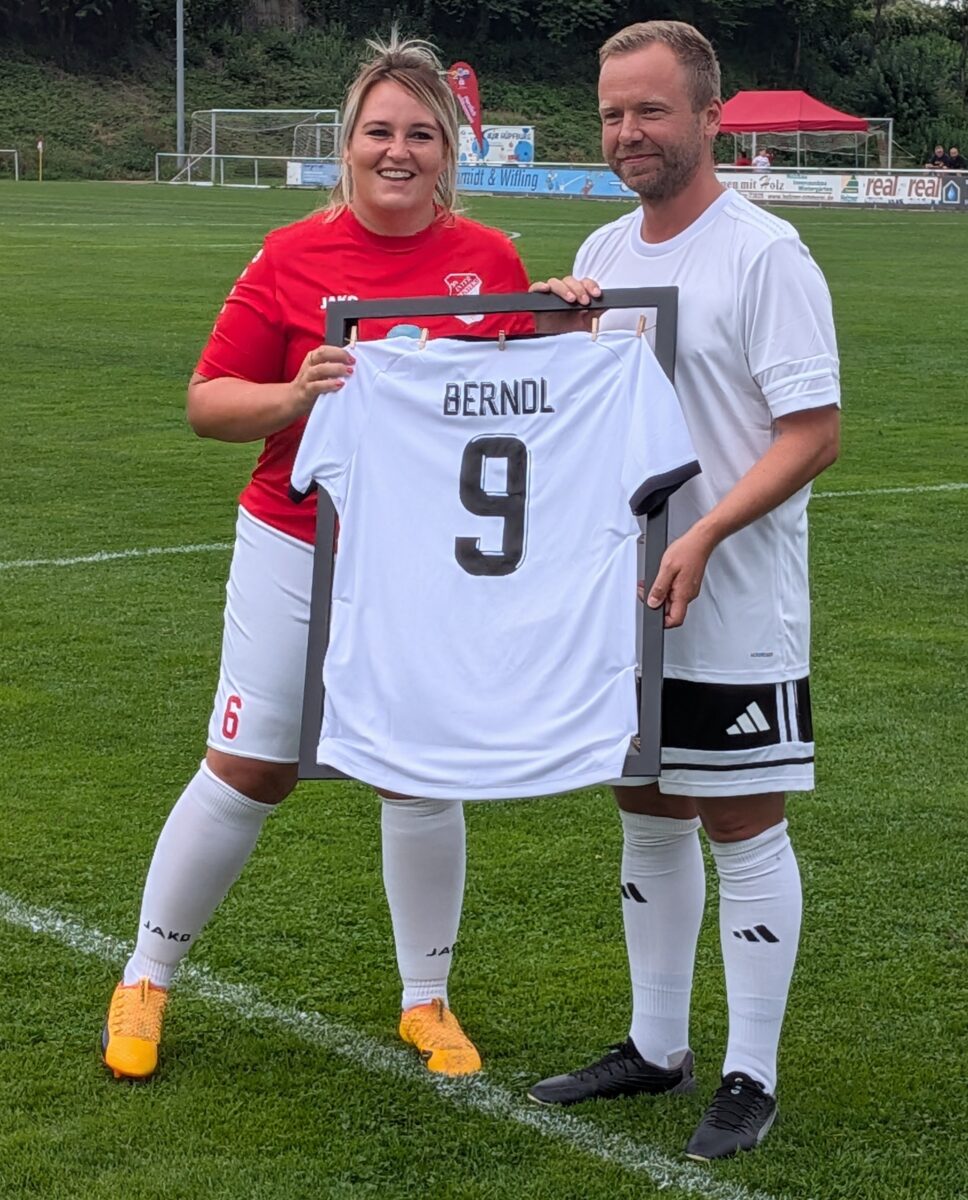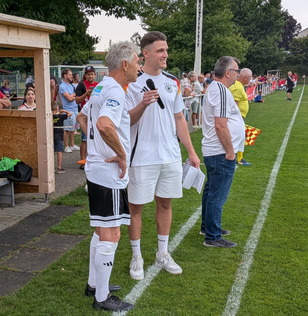 Es dauerte nicht lange, bis die Truppe von Lutz Ernemann durch einen Kopfball-Torpedo von Andy Wächter zum Ausgleich kam. Danach Chancen auf beiden Seiten, doch die beiden weiteren Tore zum 1:3 Halbzeitstand erzielten Nico Beigang und Bernd Rosinger für den Global-United FC. Im zweiten Spielabschnitt ging den Amberger Legenden etwas die Luft aus, und die Promi-Truppe schraubte das Endergebnis durch Tore von Oliver Brüggen, Timo Rost (2x) und der DAZN-Sportkommentatorin der Frauen-Bundesliga Carmen Höfflin letztendlich auf ein deutliches 7:1. Während des Spiels nutzte der deutsche Vize-Nachwuchsmoderator 2024 Luis Zehnter immer wieder die Gunst der Stunde, interessante Statements von den Akteuren einzufangen.