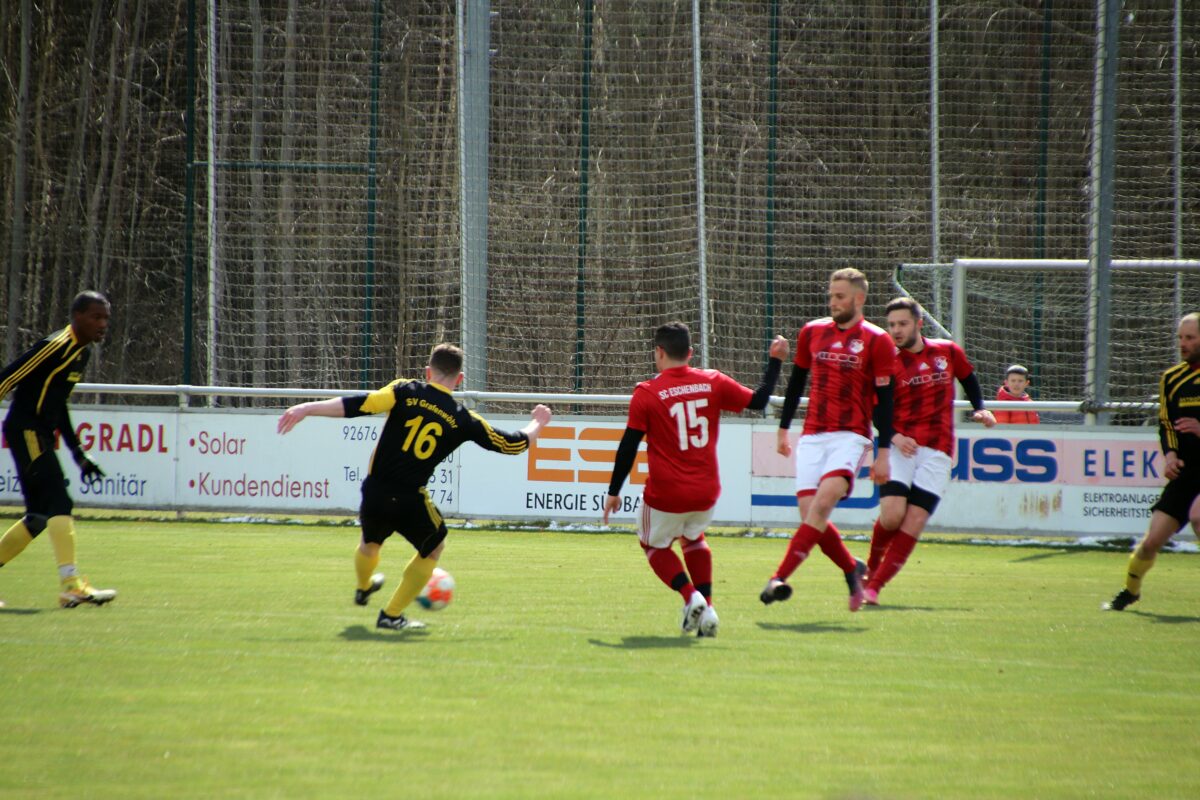 Kaum war das Spiel in Grafenwöhr angepfiffen, fiel auch schon der erste Treffer. In der 5. Spielminute traf Valentin Schieder nach einem prächtigen Pass zum Tor für den SC Eschenbach. Danach mussten die Gäste verletzungsbedingt auswechseln. In ihrem eh schon dünnen Kader, der mit Spielern der 2. Mannschaft und A-Jugendspieler aufgefüllt werden musste, kam in der 10. Spielminute noch eine Verletzung dazu.