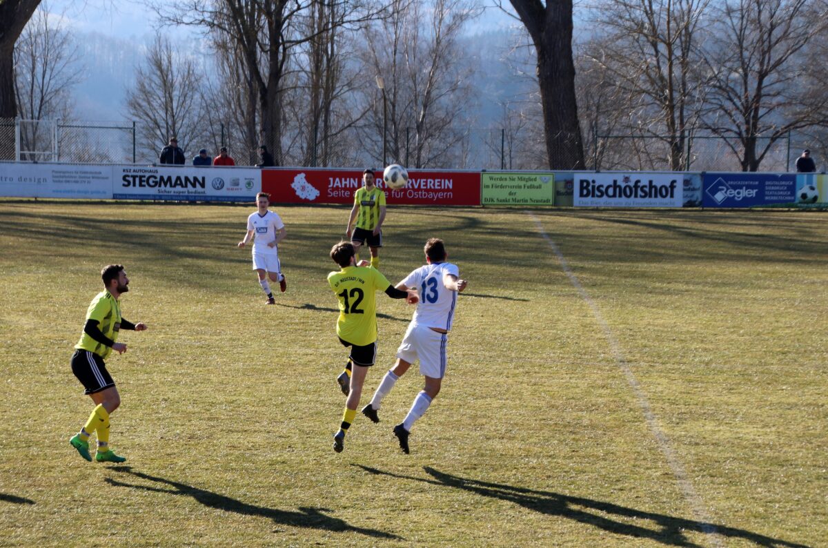 Zu Beginn versuchten beide Mannschaften gesichert aus der Abwehr den Ball laufen zu lassen. Die ersten Tormöglichkeiten hatten dabei die Gastgeber aus Neustadt/WN, die unbedingt mit einem Sieg vom Relegationsplatz 16 weg wollten. „Die ersten 15 Minuten waren ausgeglichen“, so Schnaittenbachs Spielertrainer Johannes Kohl. Doch danach wurden die Angriffe der Gäste zielstrebiger und so fiel auch das 0:1 durch Johannes Bösl in der 22. Spielminute.