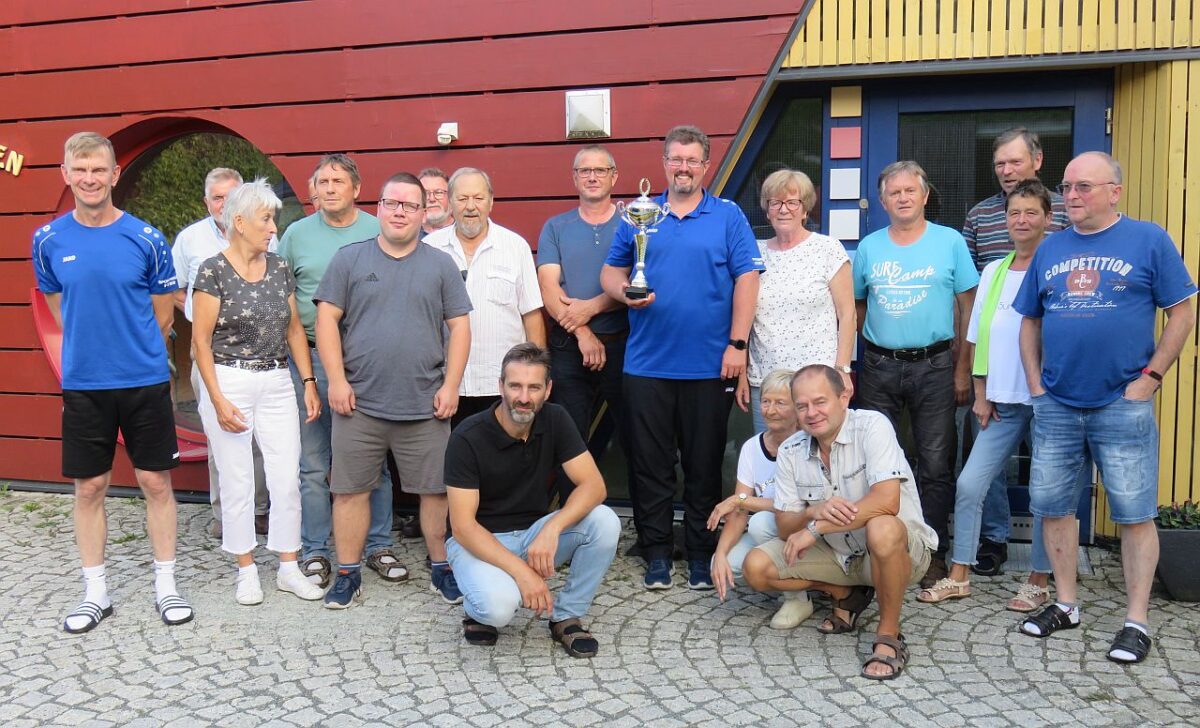 Nach einem gemeinsamen Mittagessen stand dann der sportliche Vergleich an. Auf den renovierten Plattenbahnen präsentierte sich die Weiß-Blauen in Top-Verfassung. Mit 2762:2593 Kegel sicherten sich die Altenstädter den Wanderpokal. Besonders ist die Leistung von Thomas Rupprecht zu erwähnen, der mit 605 Holz gleich einen neuen Bahnrekord aufstellte.