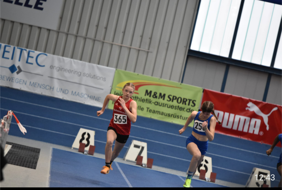 Weniger Glück hatte Lina Kümmel, W 14, die mit 8,90 Sekunden die Qualifikation für die Bayerische Meisterschaft nur knapp verpasste. Zudem machte sich ihre bereits bekannte Verletzung erneut bemerkbar, sodass sie den Wettkampf nicht schmerzfrei bestreiten konnte. Besonders hervorzuheben sind auch Mirijam Klug und Charlotte Hösl, W 12, die bei ihrem ersten Hallenwettkampf einen starken Einstand feierten und wertvolle Wettkampferfahrung sammelten.