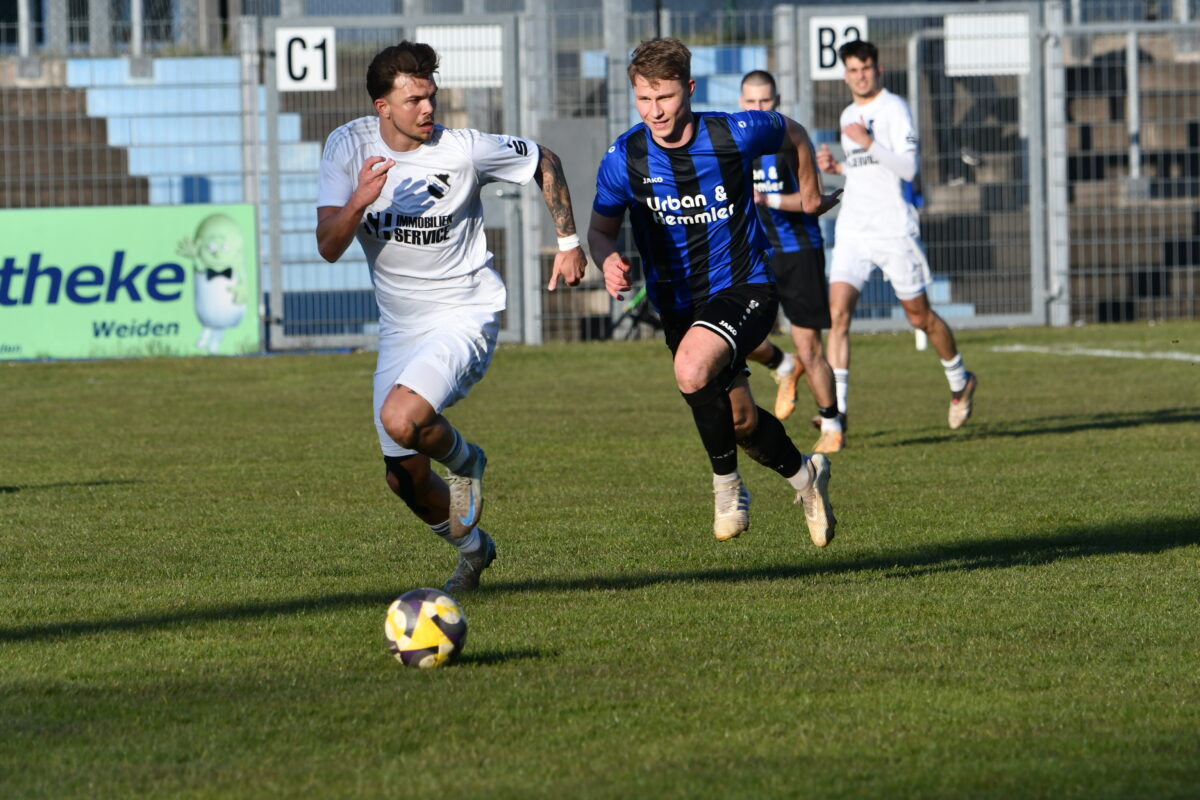 Die Startaufstellung wurde zum Sieg in Hof nicht geändert und von der ersten Minute an waren die Weidener im Strafraum der Gäste. Diese setzten aber mit einer sehr gelungenen Fünferkette stark dagegen. „Mit meinen Akteuren war ich sehr zufrieden, sie haben sich in diesem Kampfspiel gekonnt bewiesen“, so Shqipran Skeraj. Weiden zwar brandgefährlich, so hatte Patryk Bytomski die beste Chance (13.), wo er gut von Christoph Fenninger im Strafraum angespielt wurde, fast vor dem leeren Tor stand, aber dann sein Schussversuch im Boden landete.