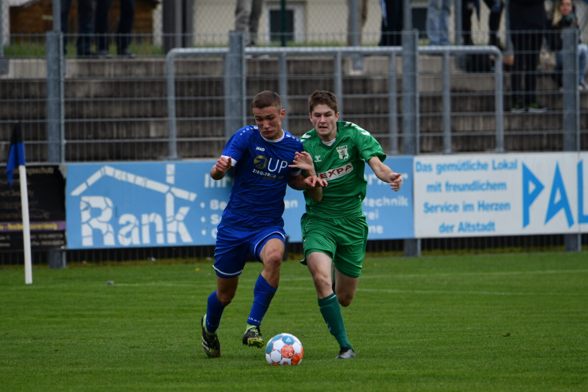 Stefan Graf erzielte das 1:0 (17.), als er eine von Moritz Zeitler scharf hereingetretene Ecke gefühlvoll über die Torlinie drückte. Nur vier Minuten vollendete der 17-jährige Stefan Pühler eine Kombination von Sven Kopp und Niklas Lang mit einem tollen Volleyschuss zum 2:0 (21.). Ein toller Start der Weidener, aber dann kam die Zeit des Gästeangreifers Jannik Göller, der zum entscheidenden Spieler der Partie wurde. Zunächst nutzte er ein Missverständnis von Graf aus. Auch Felix Behnke und Sven Kopp kamen zu spät, als Göller das 1:2 (39.) erzielte.