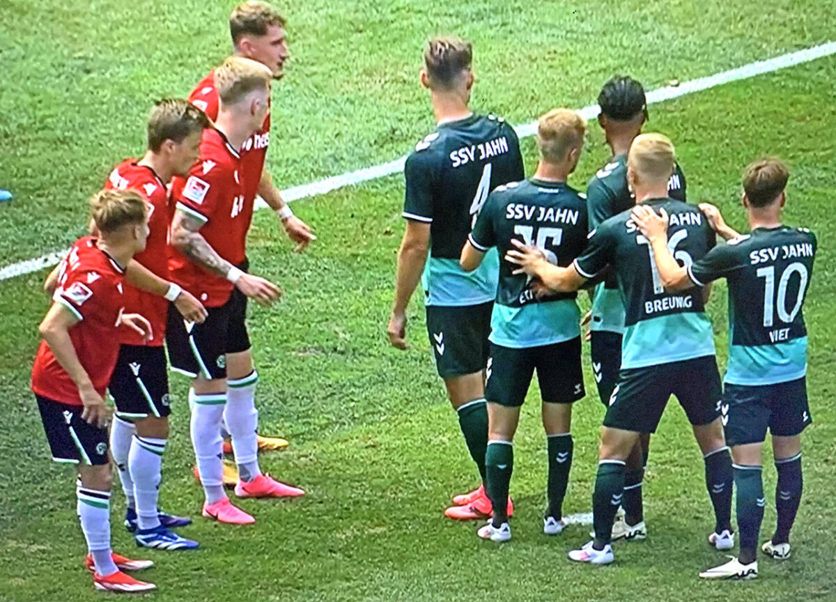 Vom aggressiven Pressing, das selbst Hannovers Trainer Stefan Leitl erwartet hatte, ist wenig zu sehen. Zu unentschlossen, zu wenig geschlossen laufen die Oberpfälzer zu Beginn an – und damit schnurstracks in die Konter der ballsicheren Hannoveraner. Besonders auf Bryan Heins linker Abwehrseite brennt es bald lichterloh.