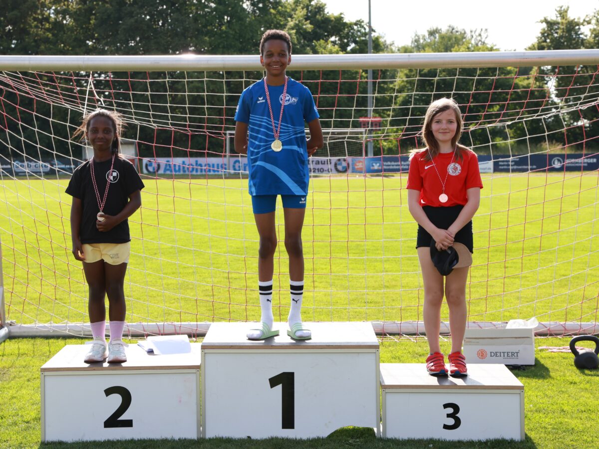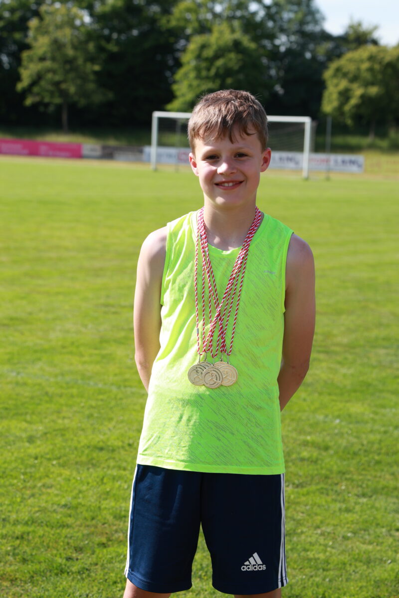 Andreas Sitzmann (M11) war der überragende Athlet dieser Meisterschaften. In fünf Disziplinen am Start sicherte er sich in allen fünf Wettbewerben den Kreismeistertitel. Mit Spitzenleistungen im 50-Meter-Sprint (7.43 Sekunden), Hochsprung (1.37 Meter), Weitsprung (4.43 Meter), Schlagballwurf (39.50 Meter) und 800-Meter-Lauf (2:43 Minuten) war er in seiner Altersklasse schlichtweg nicht zu schlagen. Gratulation zu dieser beeindruckenden Leistung! Ebenfalls glänzen konnte Johanna Schraml (W12). Sie holte sich gleich drei Titel: Über 75 Meter (11.20 Sekunden) und im Weitsprung (4.32 Meter) konnte sich die junge Athletin mit persönlichen Bestleistungen souverän gegen die Konkurrenz durchsetzen und ließ dieser auch im Hochsprung (1.29 Meter) keine Chance.