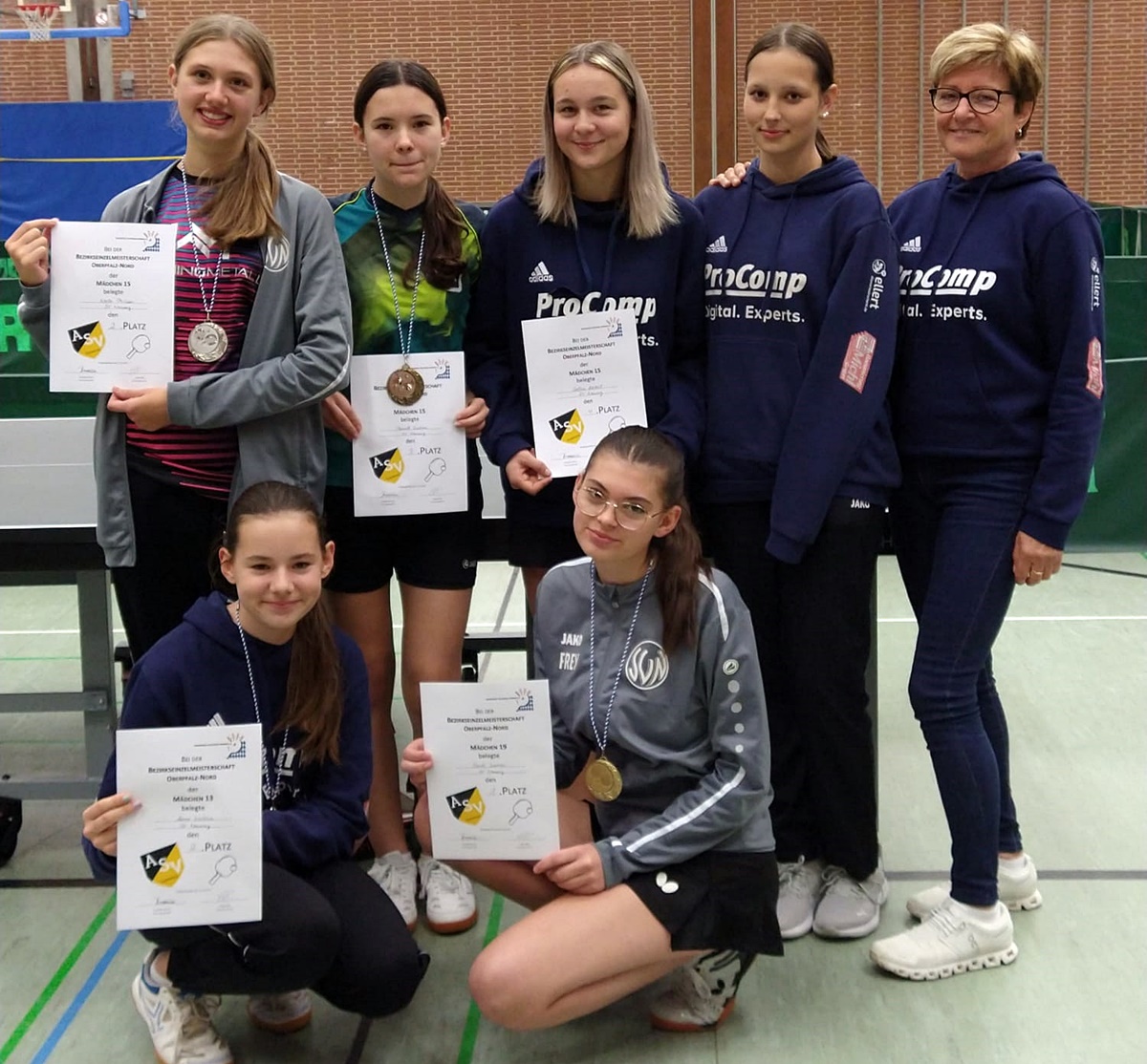 Im Finale wartete mit Anna Pickel vom SV Hahnbach ebenfalls eine „alte Bekannte“. Mit 11:3 und 11:4 schien die Neusorgerin einem glatten Erfolg entgegenzusehen, doch Pickel holte dann den dritten Satz und war auch im vierten Durchgang auf Augenhöhe mit Sischka. Schließlich setzte sich Emily knapp mit 11:9 nervenstark durch und holte damit nicht nur ihren ersten Bezirksmeistertitel im Einzel, sondern löste auch die Fahrkarte zu den Verbandsbereichsmeisterschaften.