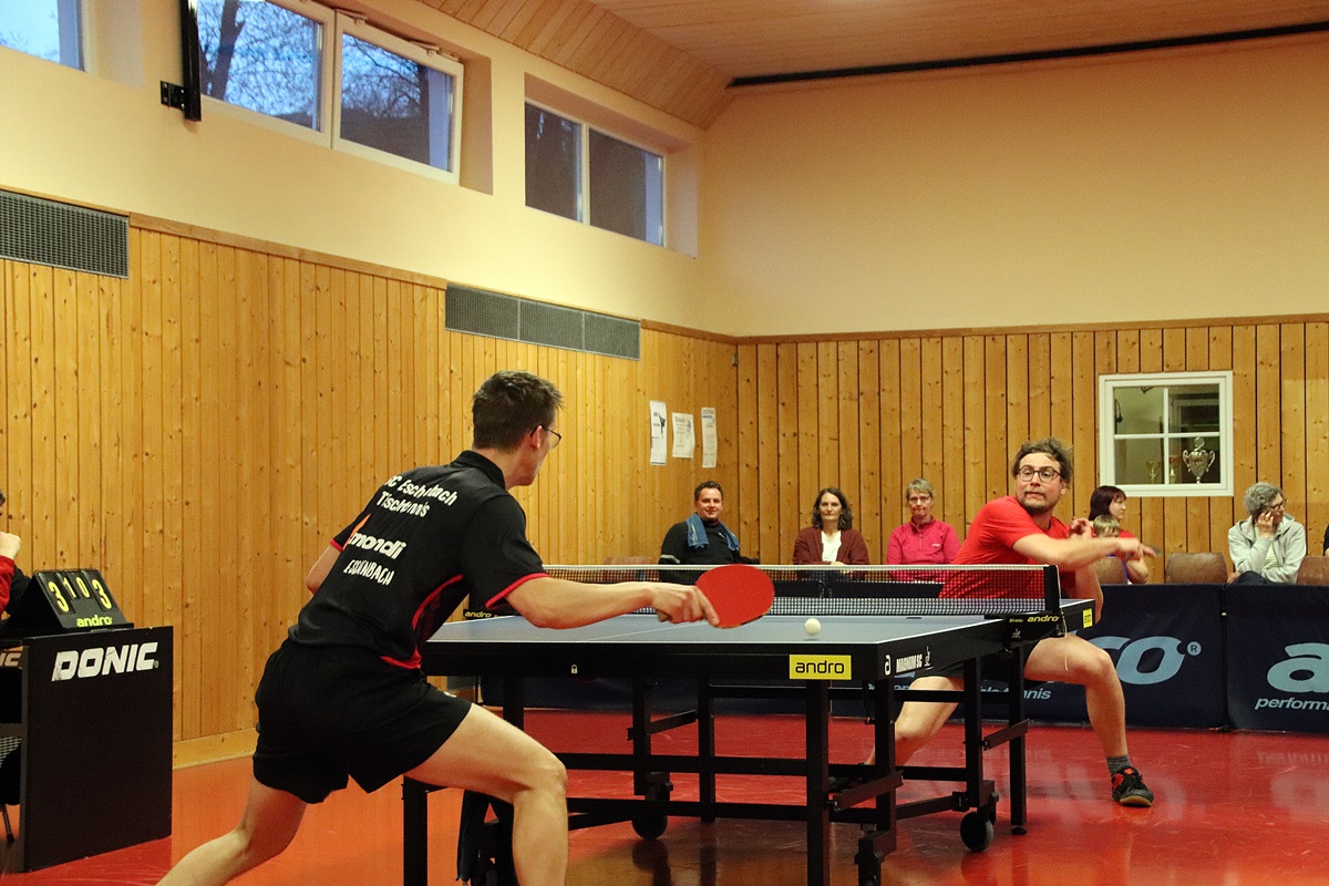 Im zweiten Einzel ließ Thomas Klösel dem Nittenauer Daniel Roban nicht den Hauch einer Chance. Thurn verlor sein zweites Spiel gegen Ernst mit 0:3 und es stand 4:4. Das beste Spiel der gesamten Saison boten Jonas Gottsche (SC) und Marian Wagner. Es ging mit hochklassigen Ballwechseln hin und her. Der Eschenbacher sah im vierten Satz schon wie der sichere Sieger aus, aber Wagner kämpfte und sicherte sich den Durchgang.