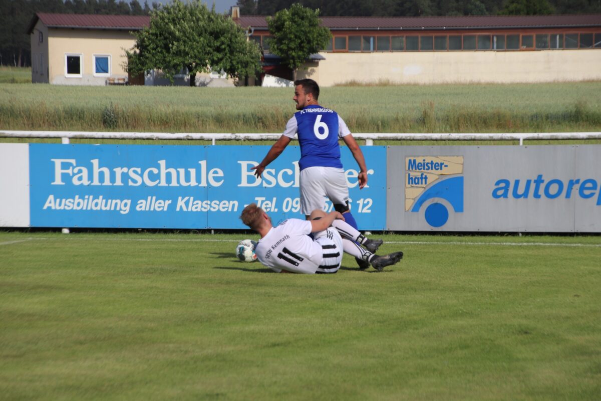 „Es war ein starkes Spiel, auch vom Tempo her“, bilanzierte Tremmersdorfs Trainer Norbert Ferstl. Auch sein Kemnather Trainerkollege Holger Philipp zeigte sich positiv überrascht über das schnelle Spiel bei 36 Grad. Die niederklassigeren Gäste setzten die ersten Akzente und führten durch einen Doppelschlag von Neuzugang Serhat Kaya (12. Minute) und einen starken Alleingang von Maximilian Herr (14.) schnell mit 2:0