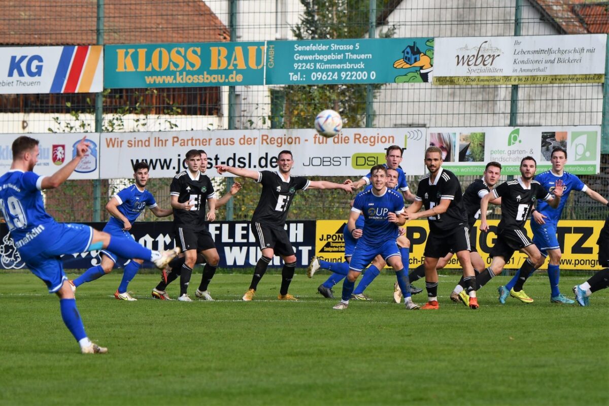 Nachdem Özbay ihn alleine auf das Tor schickte, scheiterte der erfahrene Stürmer am Ammerthaler Keeper. Ab der 40. Minute kamen die Gastgeber besser ins Spiel und Tim Sulmer forderte von Keeper Fabian Scharnagl eine Glanzleistung, als dieser seinen Freistoß über die Latte lenkte (42.). Sulmer machte es nur zwei Minuten später besser, als seine Ecke genau auf den Hinterkopf von Muslimović im Strafraum landete und dieser das 1:1 vor dem Pausentee vollendete.