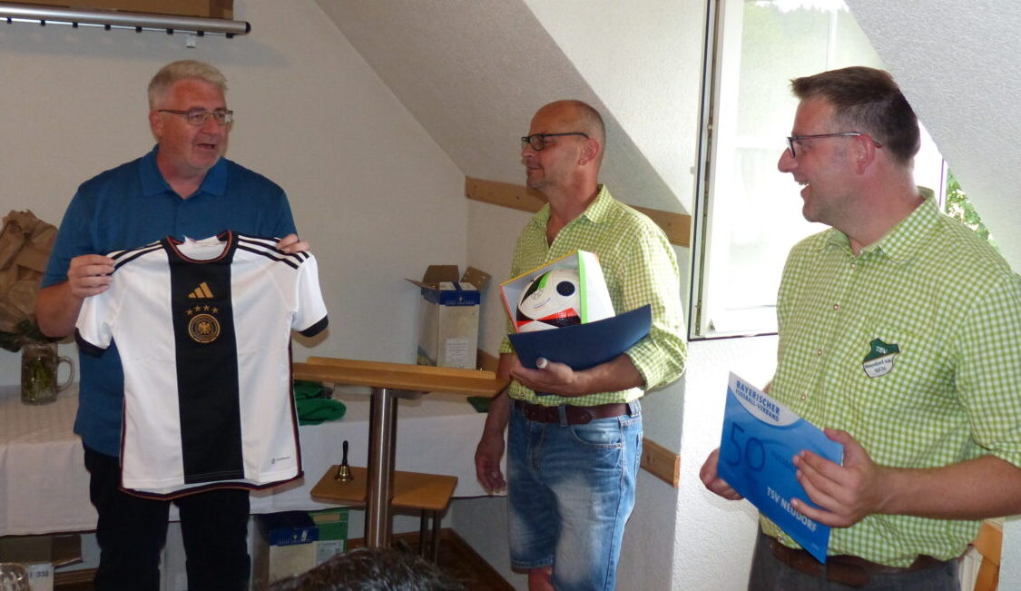 Dem Ehrenamtsbeauftragten Uli Schirmer war es vorbehalten, einen Rückblick auf die Geschichte des TSV zu werfen. Auslöser für die Gründung dürfte bei der KLJB zu suchen sein. Beim Landkreisturnier siegte die KLJB Neudorf, ein Riesenerfolg für Neudorf. Zum Endspiel ist fast das ganze Dorf zum Sportgelände der DJK Neustadt/WM angereist. Lautstark wurde die heimische Mannschaft unterstützt und schließlich zum Sieg getrieben. Eine ausgelassene Feier schloss sich an.