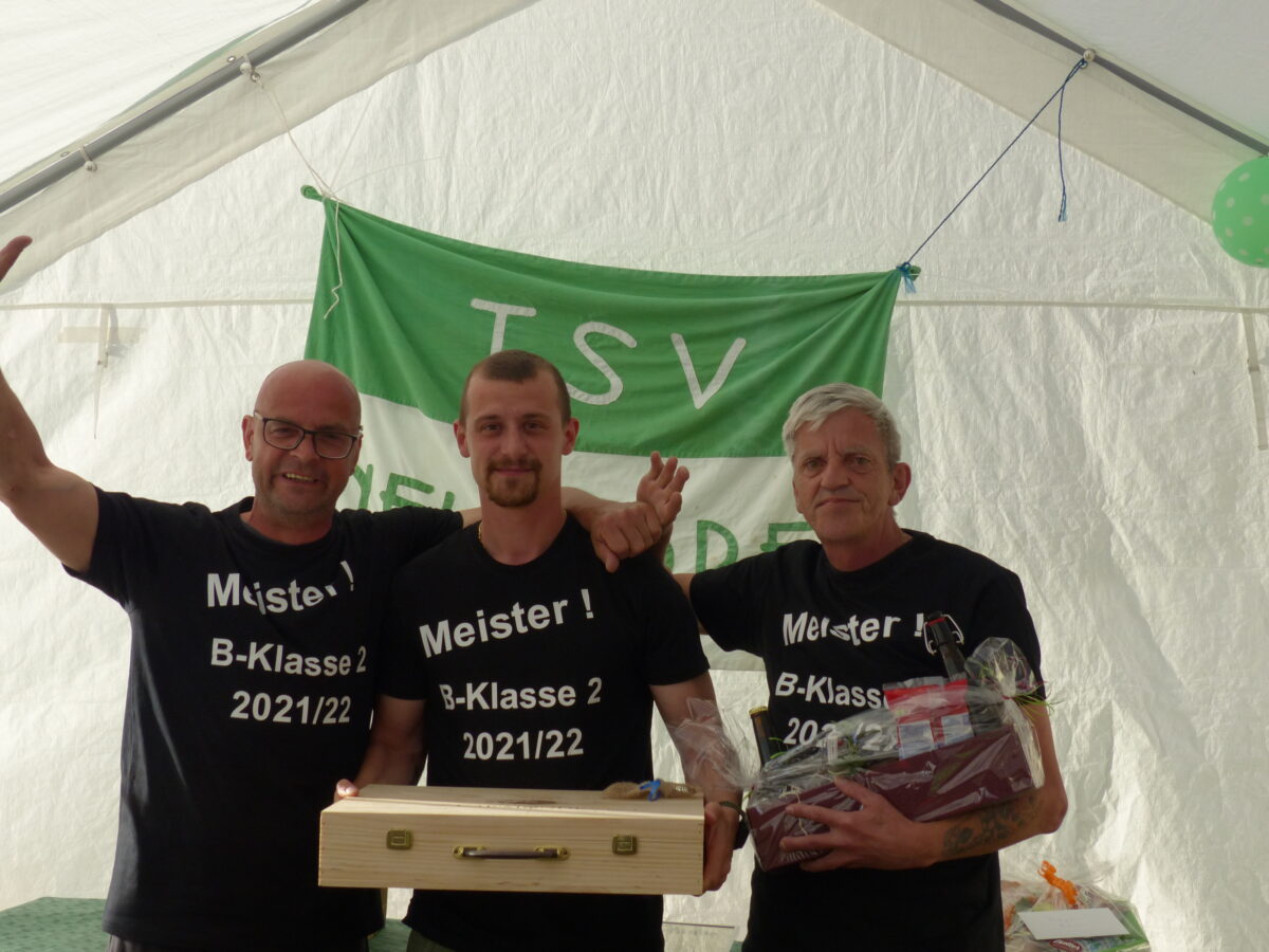 Mehr als 20 Jahre mussten die Herren des TSV Neudorf auf eine Meisterschaft warten. Und die Meistermannschaft hat dies Dank einer grandiosen Leistung geschafft: in der Rückrunde gewann sie zehn von elf Spielen und holte damit die Meisterschaft in der B-Klasse 2 und steigt in die A-Klasse auf.