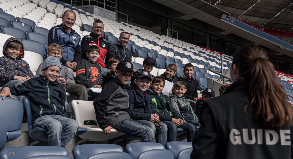 Gegen Mittag startete die Allianz Arena-Tour mit anschließendem Besuch der Erlebniswelt. Danach ging es weiter zum Trainingsgelände des FC Bayern an der Säbener Straße. Dort durften die Nachwuchskicker auf dem „heiligen Rasen“ mit Coach Andreas Fütterer eine Trainingseinheit absolvieren. Dies war eine absolute Ausnahme, denn dort darf normalerweise nie eine andere Mannschaft außer dem FC Bayern trainieren.