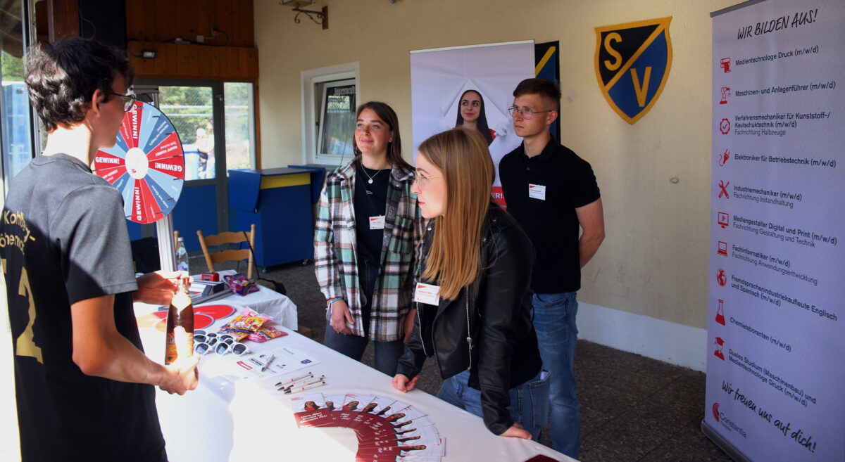 Bei einem Dutzend Fußballspielern und ihren Geschwistern sowie mitgereisten Familien hatten die Personal- und Ausbildungsspezialisten von 10 Uhr bis zur Siegerehrung gut zu tun. „Durch dieses coole Format, jenseits der klassischen Wege, waren viele gewinnbringende Gespräche für uns und die jungen Menschen möglich“, bestätigte Tobias Nerl, der einen Geschwindigkeitsmesser mitgebracht hatte, für die Witt-Gruppe Weiden. Für mehr Schnupperlehren und Praktika statt übereiltem Studium plädierte Laura Gurdan vom