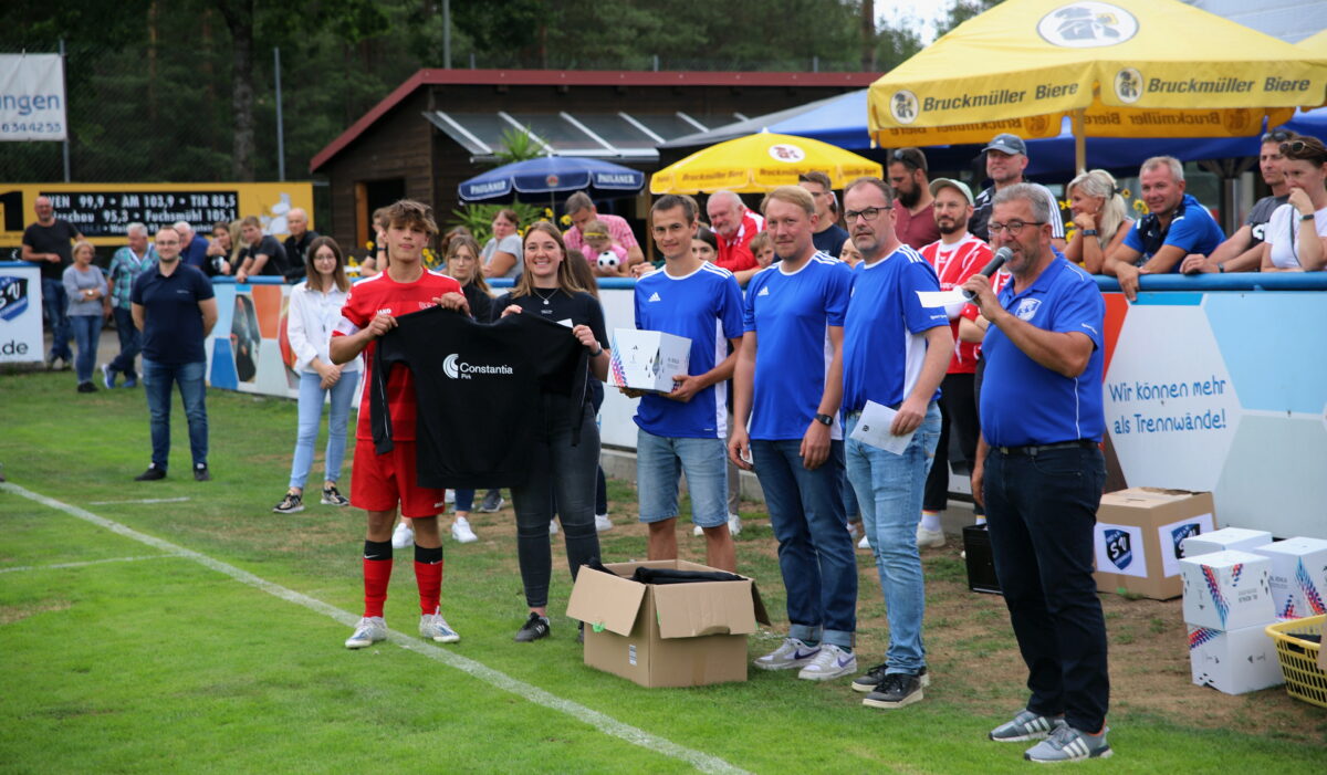 Für sechs Aussteller war ein großes Zelt aufgestellt, BHS und Constantia Pirk hatten ihren Infostand direkt am Funktionsgebäude. Katharina Wolf und Anja Hopf von Constantia waren sicher, dass ihr Angebot bei den interessierten Kickern in bester Erinnerung bleibe. Sie lobten die Symbiose Sport und Spiel für die 14- bis 19-jährigen Ausbildungsstellensuchenden. „Jugendarbeit ist wichtig und muss unterstützt werden“, betonte Wolf. Der Sprecher des Bayernwerkteams, Maximilian Nössner, war begeistert von der Regionalität als Aushängeschild „einer super organisierten Aktion“.