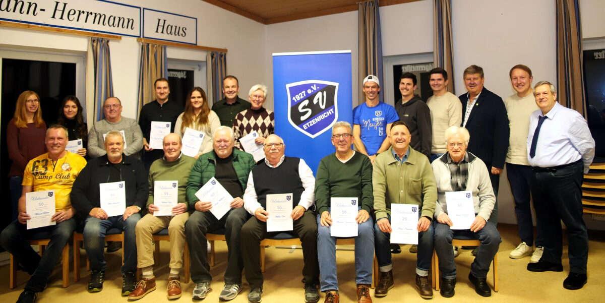 Für 25 Jahre Treue zum Verein wurden geehrt: Englhardt Mario, Englhardt Elke, Englhardt Yannick, Feneis Gisela, Neumeier Klaus, Lukas Neumeier, Roth Lena, Waldeck Luisa, Linz Peter, Waldeck Elke, Hagn Monika, Rösch Maximilian, Bolz Silvia, Beutner Bettina, Zwack Magdalena; für 40 Jahre: Lehner Thomas, Herrmann Klaus; für 50 Jahre: Böhm Michael, Schregelmann Stefan; für 55 Jahre: Manfred Herrmann, Voss Walter, Cermak Franz, Kern Herbert, Dietl Helmut; für 60 Jahre: Schneider Willi und Walberer Rudi.