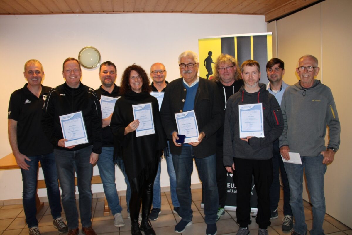 Diese Ehrung erhielt auch Katja Neupert. Peter Teleki, Michael Kippes, Sandro Schäffler und Josef Kreuzer bekamen jeweils für 10 Jahre Engagement im Vorstand das Verbands- Ehrenzeichen in Silber. Rupert Troppmann wurde mit der Verbands-Ehrenzeichenmedaille in Gold geehrt. Nach langjähriger Tätigkeit als Sponsoring-Beauftragter und Vereinsehrenamtsbeauftragter wurden Josef Kreuzer und Reinhard Prem verabschiedet.