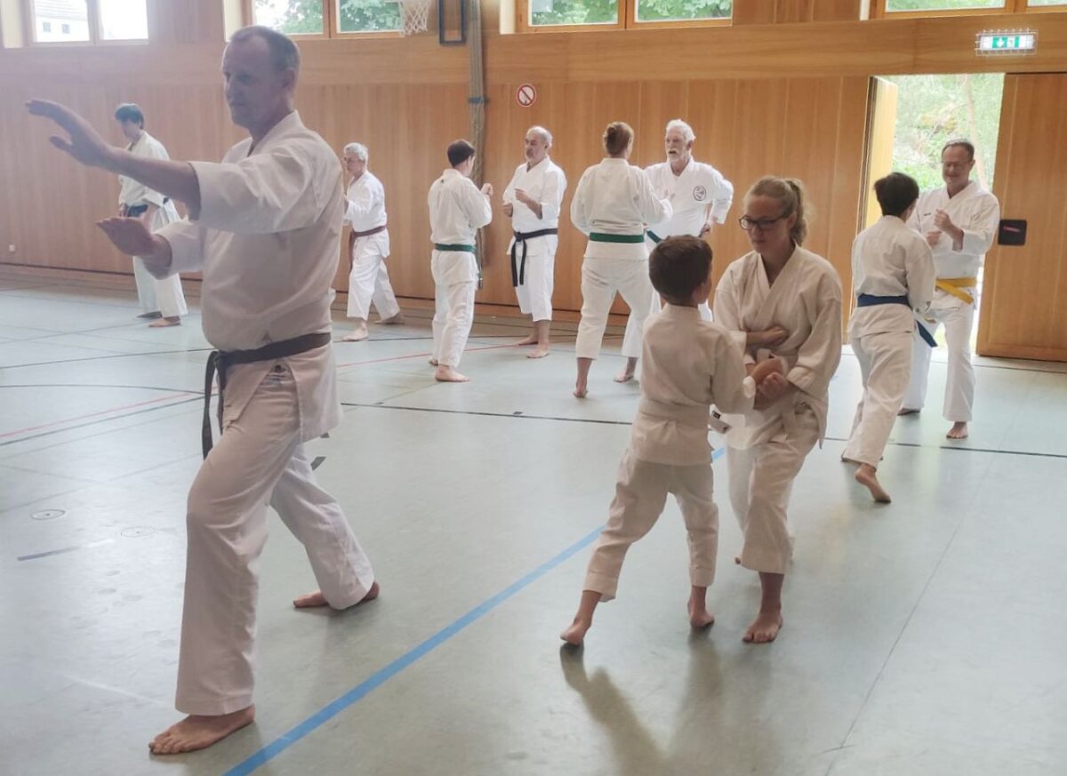 In den ersten Stunden des Vormittags lag der Schwerpunkt auf effektiven Techniken zum erfolgreichen Beenden eines Kampfes. Dazu trainierten alle gemeinsam Elemente von Katas, also Techniken, die in einer festgelegten Abfolge und Form zu üben sind und auch die Kata “Hein Shodan”.