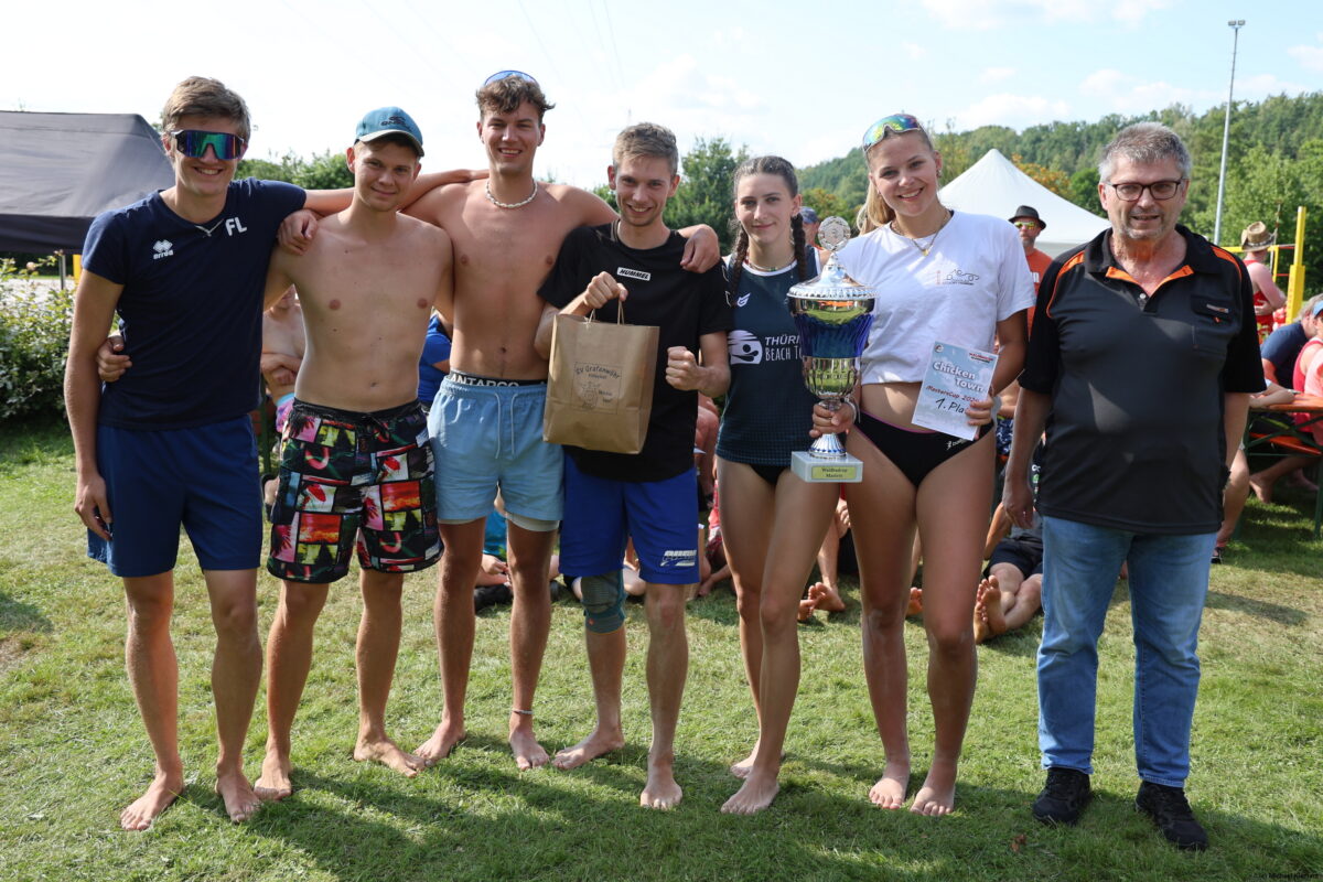 Der Fun Cup richtet sich an Hobby-, Gelegenheitsspieler und Anfänger. Dieser ist als Breitensport sehr beliebt, nur 48 Stunden nach der Anmeldung waren alle Startplätze belegt – ein absoluter Rekord. Gab es im vergangenen Jahr das erste Grafenwöhrer Finale seit Beginn des Turniers zwischen den Sandsäcken und den Pop-up-Blockern, war es dieses Mal ein reines Weidener Endspiel. Schon am ersten Tag setzte Beach Please ein Statement, als sie ihre drei Gruppenspiele mit einer Bilanz von Plus 70 Bällen gewannen. Und so gewannen sie auch ihr Finale gegen Old Schmetterhand glatt in zwei Sätzen.