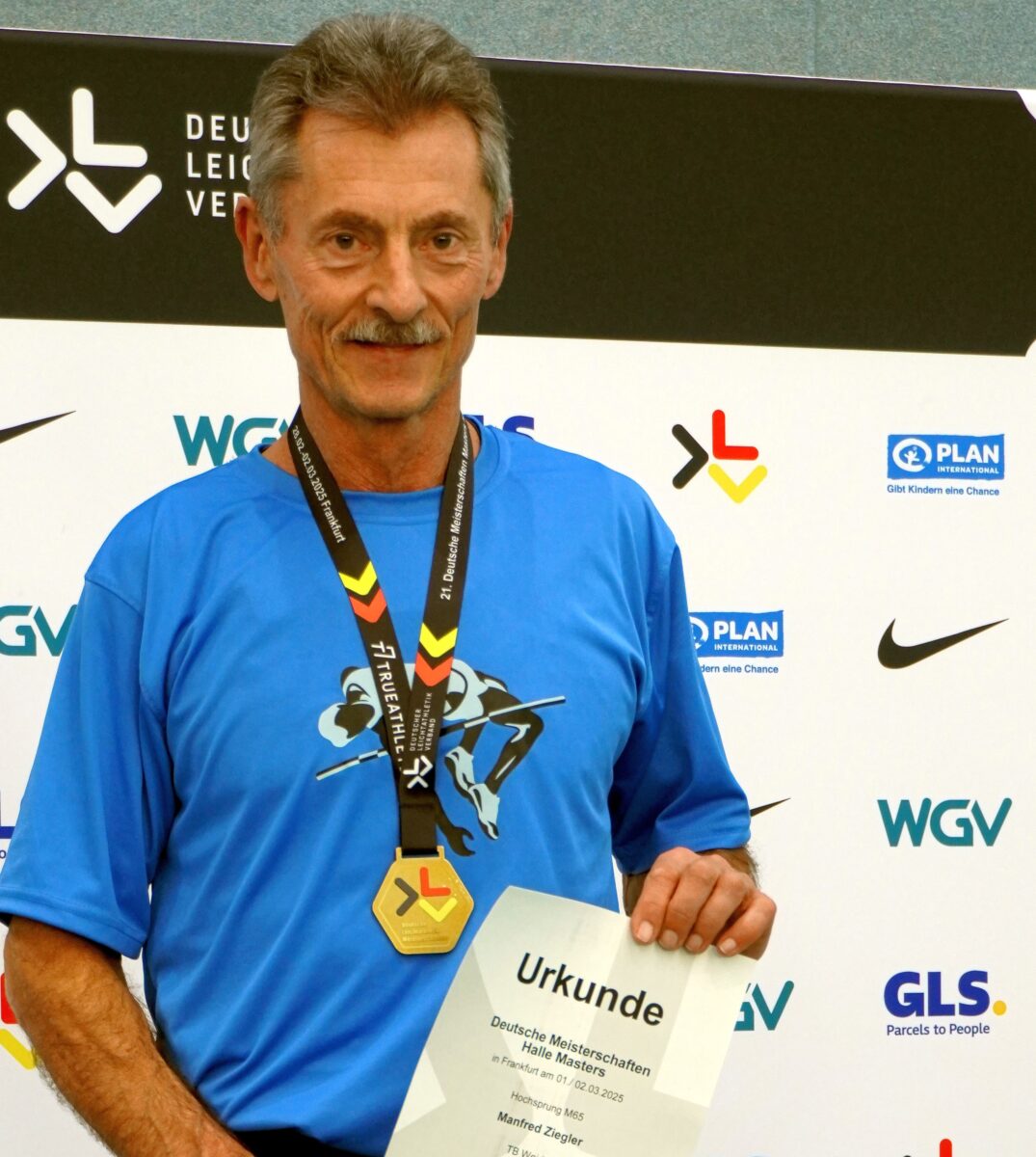 Ziegler gelang dann endlich am Sonntag bei seiner letzten Möglichkeit eine erstklassige Serie mit fünf gültigen Versuchen jeweils im ersten Durchgang. Sein Vorsprung auf die Konkurrenz war mit 23 Zentimetern im Endergebnis enorm – seine 1,68 Meter hätten auch in der M50, M55 und M60 Sieg und Deutsches Gold bedeutet. „Kein Wackeln, kein Touchieren, kein Verrutschen der Latte, endlich alles richtig gemacht,“ freute er sich über seinen gelungenen Coup.