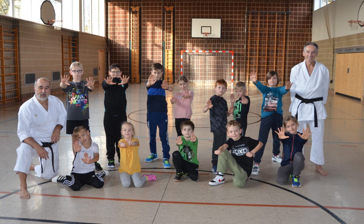 Mit Begeisterung dabei waren: Aaron, David, Finn, Julian, Kilian, Lorenz, Ludwig, Marco, Maxima, Milena, Niklas, Samuel und natürlich die beiden Trainer Josef Reichenberger (Zweiter Dan Karate)und Josef Pflaum (Vierter Dan Karate).
