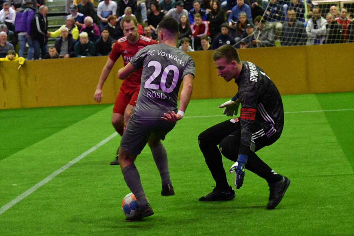 Insider wussten, dass der Nordost-Landesligist FC Vorwärts Röslau traditionell in der Halle eine scharfe Klinge schlägt. Mussten sich die Fichtelgebirgler in der Gruppenphase noch dem Lokalmatador SpVgg SV Weiden mit 1:3 geschlagen geben, wurde die Truppe von Trainer Andreas Lang immer stärker. Im Halbfinale trumpfte der zum ersten Mal überhaupt beim Weidener Hallenturnier spielende FC Vorwärts beim 4:0 gegen den bis dahin starken SV Schwandorf-Ettmannsdorf aus der Landesliga Mitte groß auf, um im Finale Titelverteidiger SpVgg Pfreimd beim überlegenen 5:1-Erfolg schier schwindlig zu spielen. Es war eine Augenweide, wie die ebenso technisch versierten wie pfeilschnellen und giftigen Röslauer um den zum besten Spieler des Turniers gewählten Kaan Gezer aufzauberten und nie einen Zweifel am Sieg aufkommen ließen.