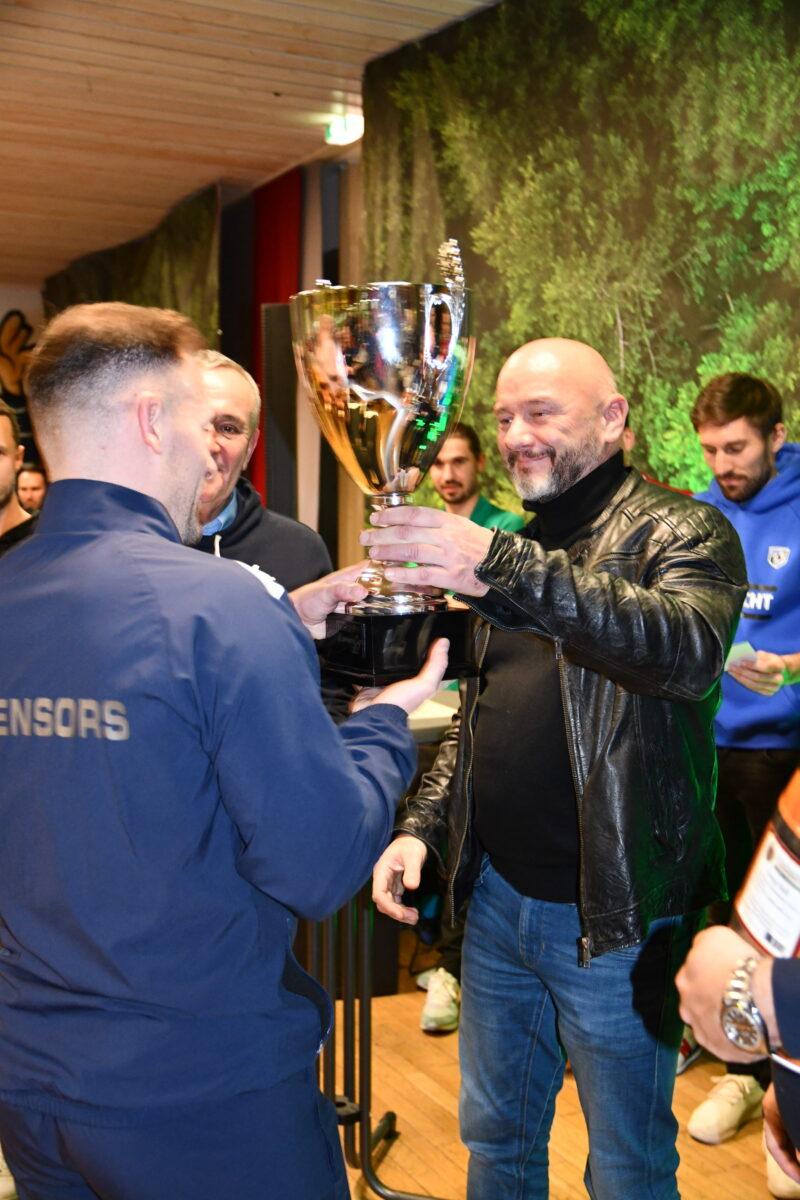 Noch tags zuvor war sich SpVgg SV-Vorsitzender Michael Kurz nicht hundertprozentig sicher, ob das Turnier seine Anziehungskraft behalten hat. „Corona hat die Leute vorsichtiger gemacht“, befürchtete er weniger Fans als vor der Coronapause, wo bis zu 1400 Zuschauer in die Mehrzweckhalle geströmt waren. Doch die Fußballanhänger aus nah und fern sollten Kurz’ Befürchtungen schnell zerstreuen: Kurz nach 14 Uhr passte fast keine Maus mehr in die Halle: Fast 2000 Zuschauer zählten die SpVgg-Verantwortlichen auf der Tribüne, hinter den Toren und an den Fenstern im Jugendraum. Der Vorsitzende und seine Mitstreiter um Turnier-Organisator Thomas Binner durften tief durchschnaufen, all die Mühen hatten sich gelohnt. „Das Turnier hat nichts an seinem Glanz verloren“, stellte ein hochzufriedener Vorsitzender schon vor dem Ende zufrieden fest.