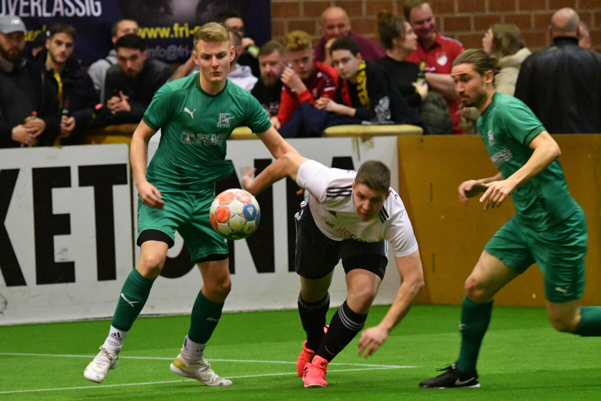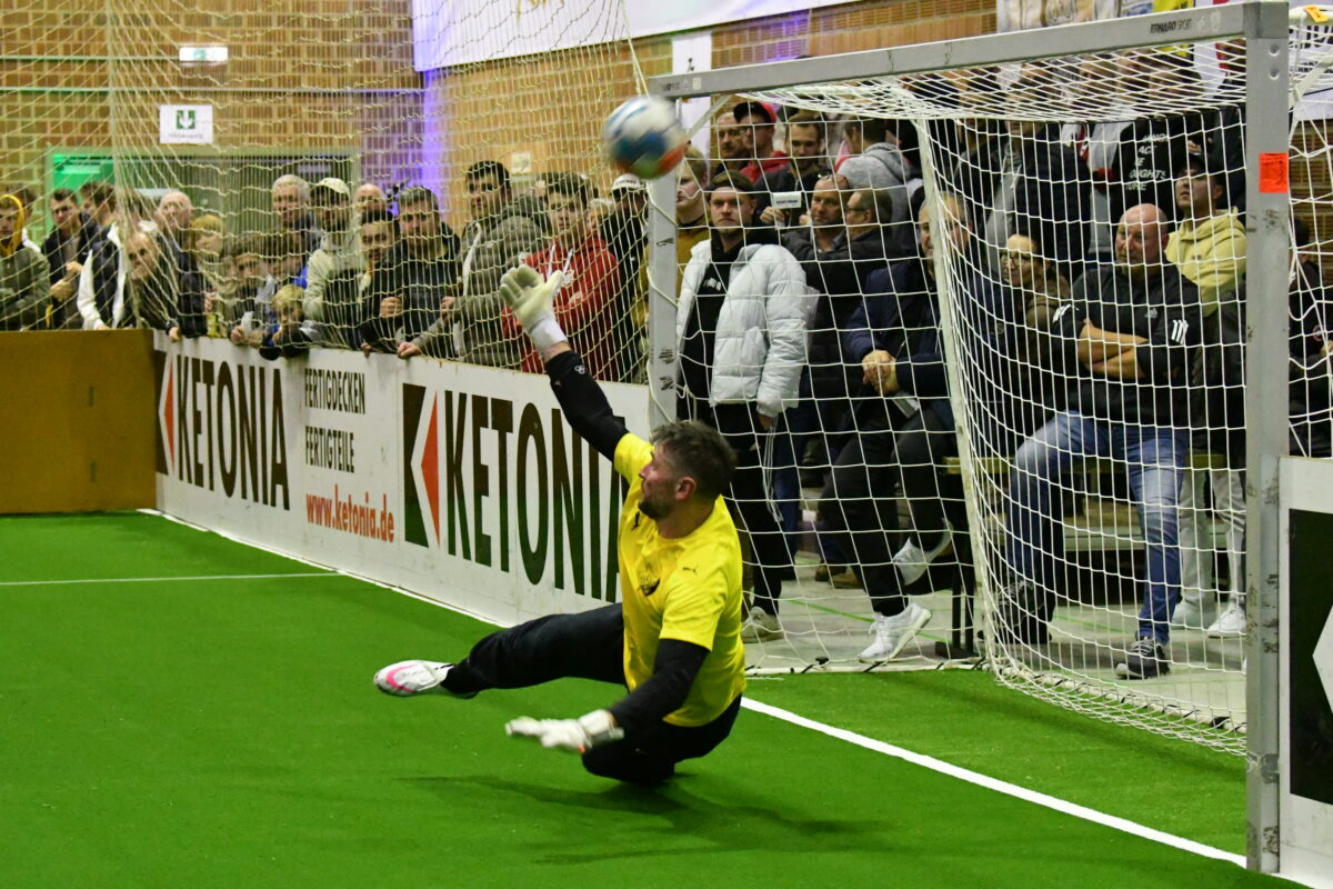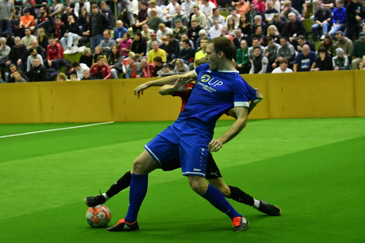 Eine enge Kiste im (nicht belohnten) Kampf um das stimmungsvollste Publikum lieferten sich auf der Tribüne die Fans vom FC Weiden Ost und von der SpVgg Pfreimd. Immer, wenn ihre Teams auf dem Rasen standen, steigerte sich der Geräuschpegel in der Halle um das bis zu Zehnfache. Mit Pauken, Trompeten, Hupen und enormer Stimmgewalt ließen sie keinen Zweifel daran aufkommen, welchem Team ihre Sympathien gehören. Vor allem, als die Ostler in der Gruppe gegen den großen Nachbarn SpVgg SV in Führung gingen, glich ein Teil der Halle einem Tollhaus. Davon ließ sich der Favorit aber nicht beeindrucken und setzte sich noch klar mit 5:1 durch.