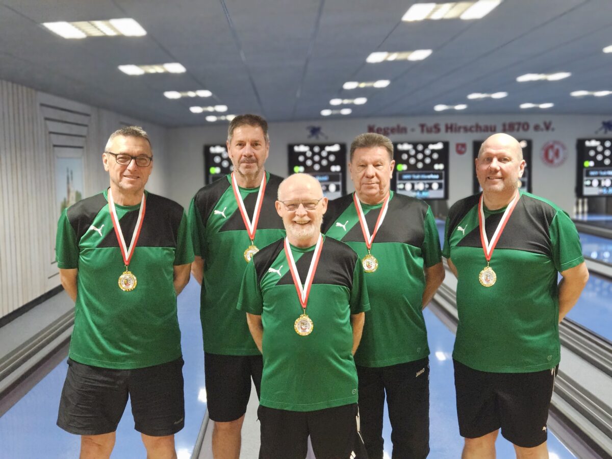 Ebenfalls Gewinner der Bezirksmeisterschaften wurden die Senioren B. Mit 2247 Kegel gesamt sichert Erwin Schmidt 591 Kegel, Thomas Schmidt 528 Kegel, Stefan Schmucker 551 Kegel und Manfred Ziegler 523 Kegel den Titel für den SKV Weiden. Die Vizemeisterschaft feierten die Senioren A mit 2177 Kegel. Jürgen Roier 576 Kegel, Josef Keller 574 Keller und Michael König 507 Kegel überzeugten.