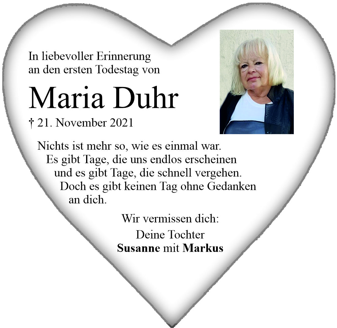 Gedenkanzeige Maria Duhr