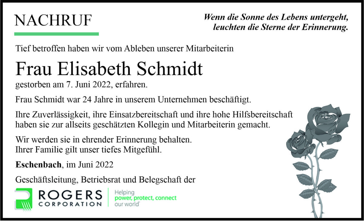 Nachruf Elisabeth Schmidt, Eschenbach 27. Juni 2022, 06:00 Uhr Von: redaktion Nachruf Elisabeth Schmidt, Eschenbach Landkreis Neustadt/WN Eschenbach