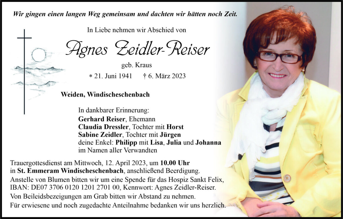 Traueranzeige Agnes Zeidler-Reiser, Windischeschenbach 07. April 2023, 20:00 Uhr Von: redaktion Traueranzeige Agnes Zeidler-Reiser, Windischeschenbach Stadtgebiete Weiden Weiden Stadt Landkreis Neustadt/WN Windischeschenbach