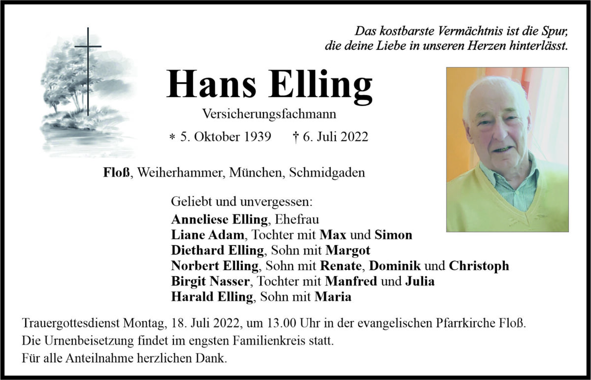 Traueranzeige Hans Elling, Floß 14. Juli 2022, 06:00 Uhr Von: redaktion Traueranzeige Hans Elling, Floß Stadtgebiete Weiden Weiden Stadt Landkreis Neustadt/WN Weiherhammer