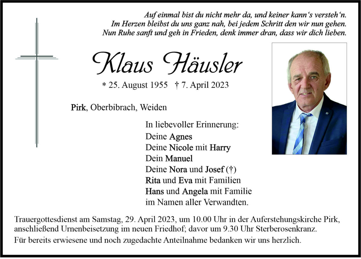 Traueranzeige Klaus Häusler, Pirk