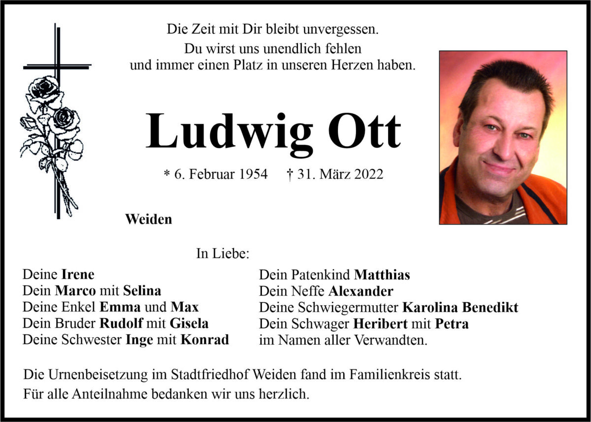 Traueranzeige Ludwig Ott, Weiden 13. April 2022, 06:00 Uhr Von: redaktion Traueranzeige Ludwig Ott, Weiden Stadtgebiete Weiden Weiden Stadt