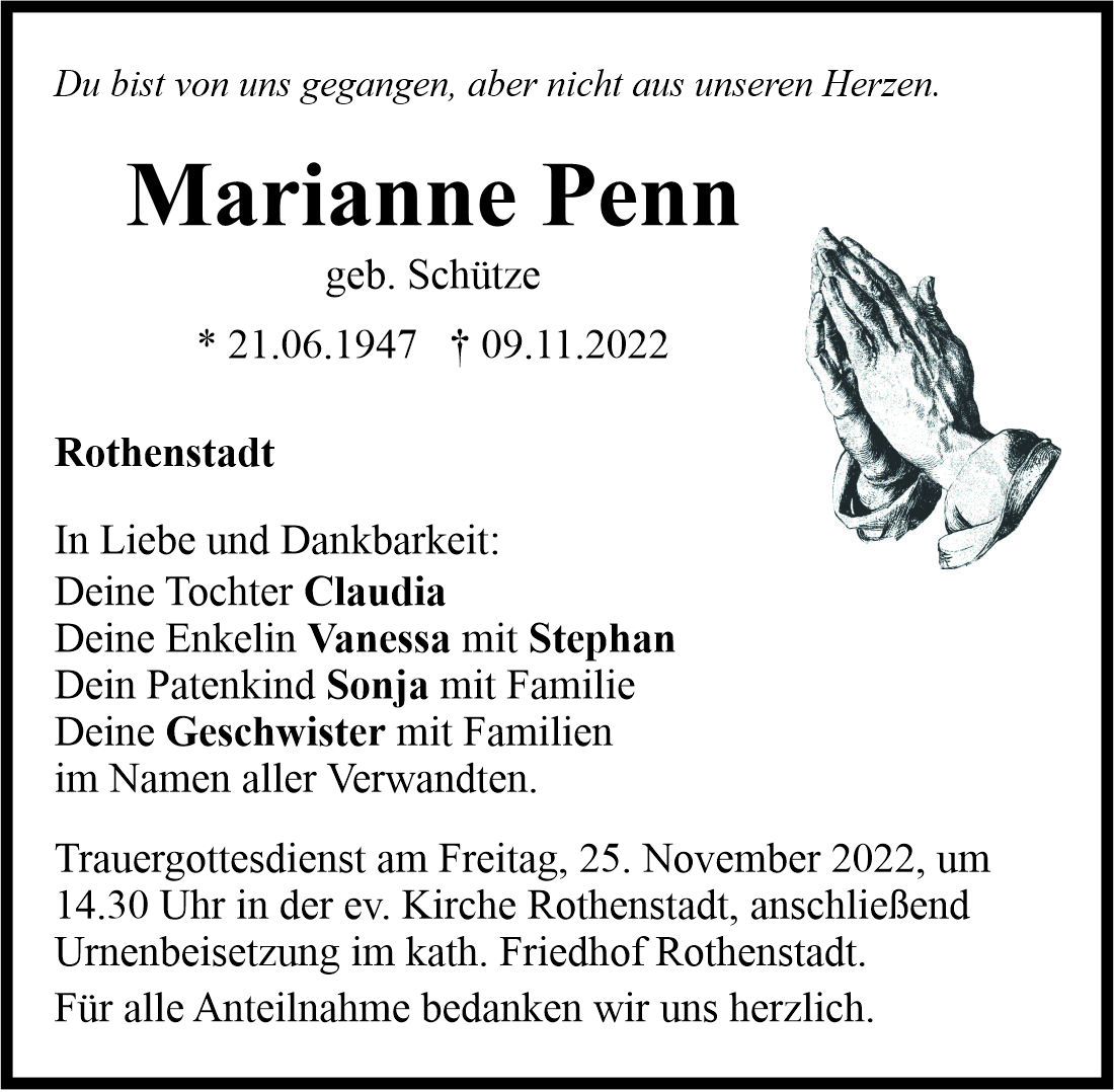 Traueranzeige Marianne Penn, Rothenstadt 21. November 2022, 06:00 Uhr Von: redaktion Traueranzeige Marianne Penn, Rothenstadt Stadtgebiete Weiden Rothenstadt