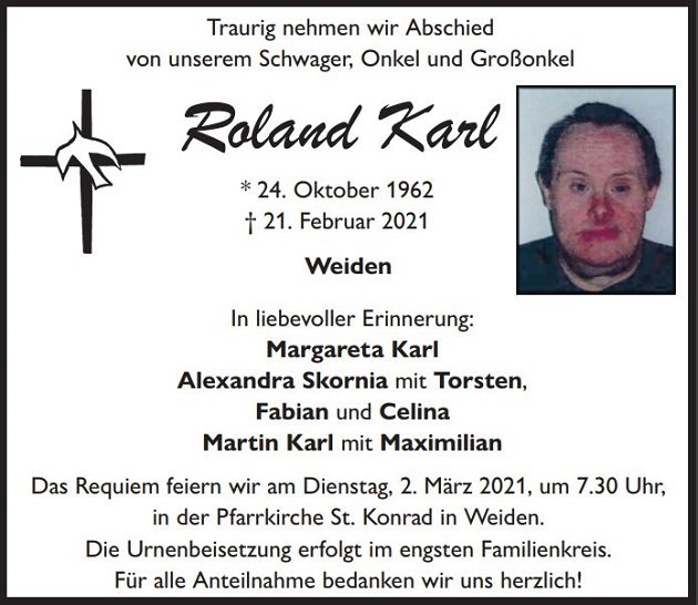 Traueranzeige Roland Karl, Weiden 26. Februar 2021, 06:23 Uhr Von: redaktion Traueranzeige Roland Karl, Weiden Stadtgebiete Weiden Weiden Stadt