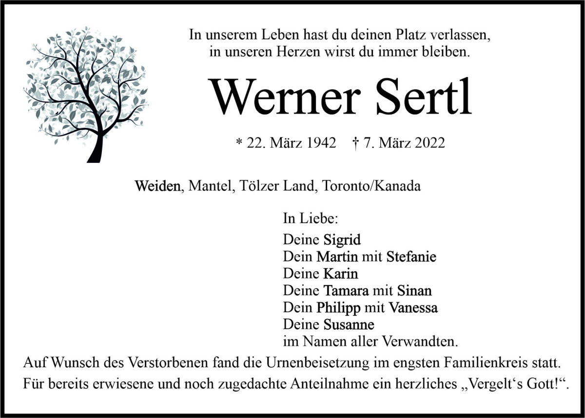 Traueranzeige Werner Sertl, Weiden 18. März 2022, 06:00 Uhr Von: redaktion Traueranzeige Werner Sertl, Weiden Landkreis Neustadt/WN Mantel Stadtgebiete Weiden Weiden Stadt