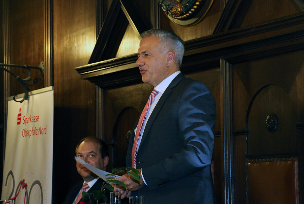 „Ein 200-jähriges Jubiläum ist ein ganz besonderes Ereignis“, begrüßt Oberbürgermeister Jens Meyer die Gäste, „Vor allem, wenn die Begründung der Sparkasse hier in unserem alten ehrwürdigen Rathaus vor 200 Jahren stattgefunden hat“, sagt der stellvertretende Verwaltungsratsvorsitzende. Der Beginn einer wirtschaftlichen Erfolgsstory für Weiden und die nördliche Oberpfalz.