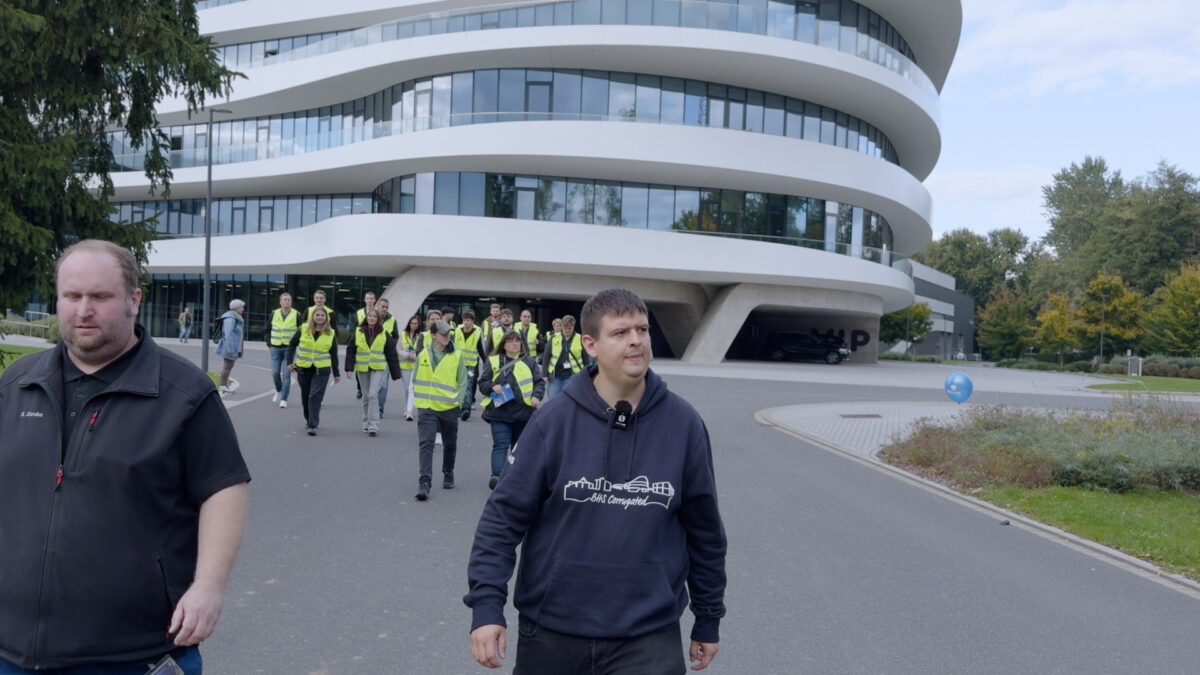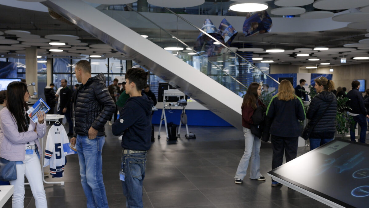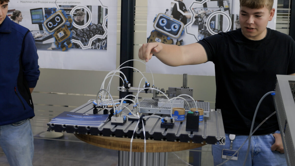 An den einzelnen Stationen geben meist BHS-Auszubildende ihren Gästen kompetente Einblicke in ihre Arbeit. Luis, Mechatroniker-Azubi im dritten Lehrjahr, erklärt an einer Pneumatikanlage einen Teilprozess des Produktionsablaufs, sein Kollege Kilian, ebenfalls Mechatroniker, versichert unterdessen, wie interessant es ist, bei BHS Corrugated zu arbeiten. “Schon am Beispiel unserer Kantine, die ja eher ein Restaurant ist, sieht man, wie viel Wert hier auf die Beschäftigten gelegt wird.” Aber auch die Arbeitsbedingungen allgemein seien bei BHS Corrugated vorbildlich. “So müssen wir als Lehrlinge zum Beispiel nicht raus, werden in der eigenen Lehrwerkstatt ausgebildet.”